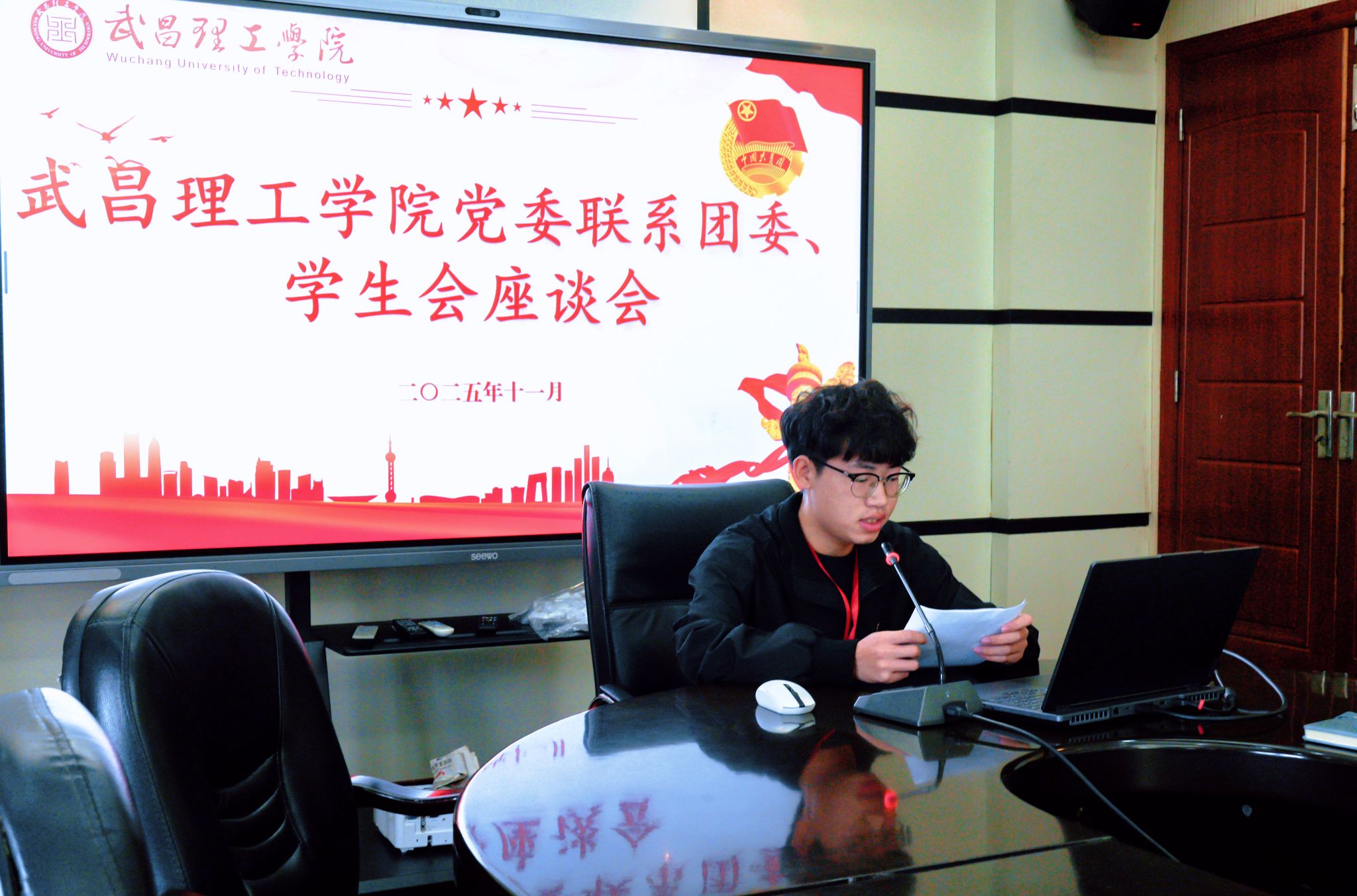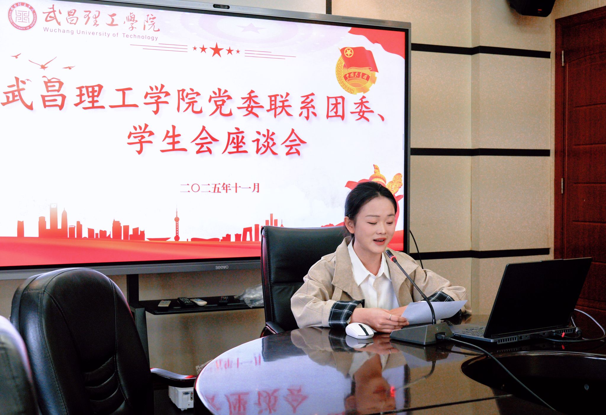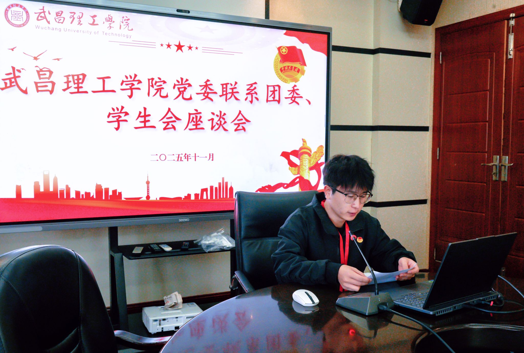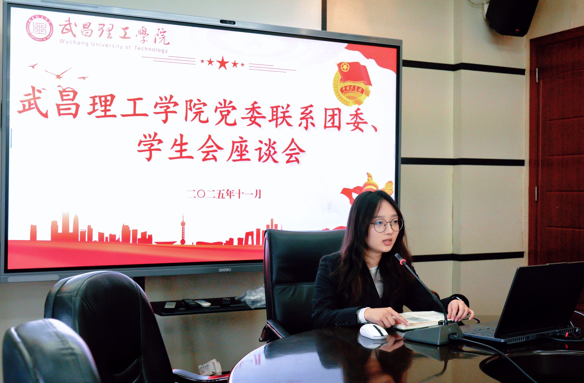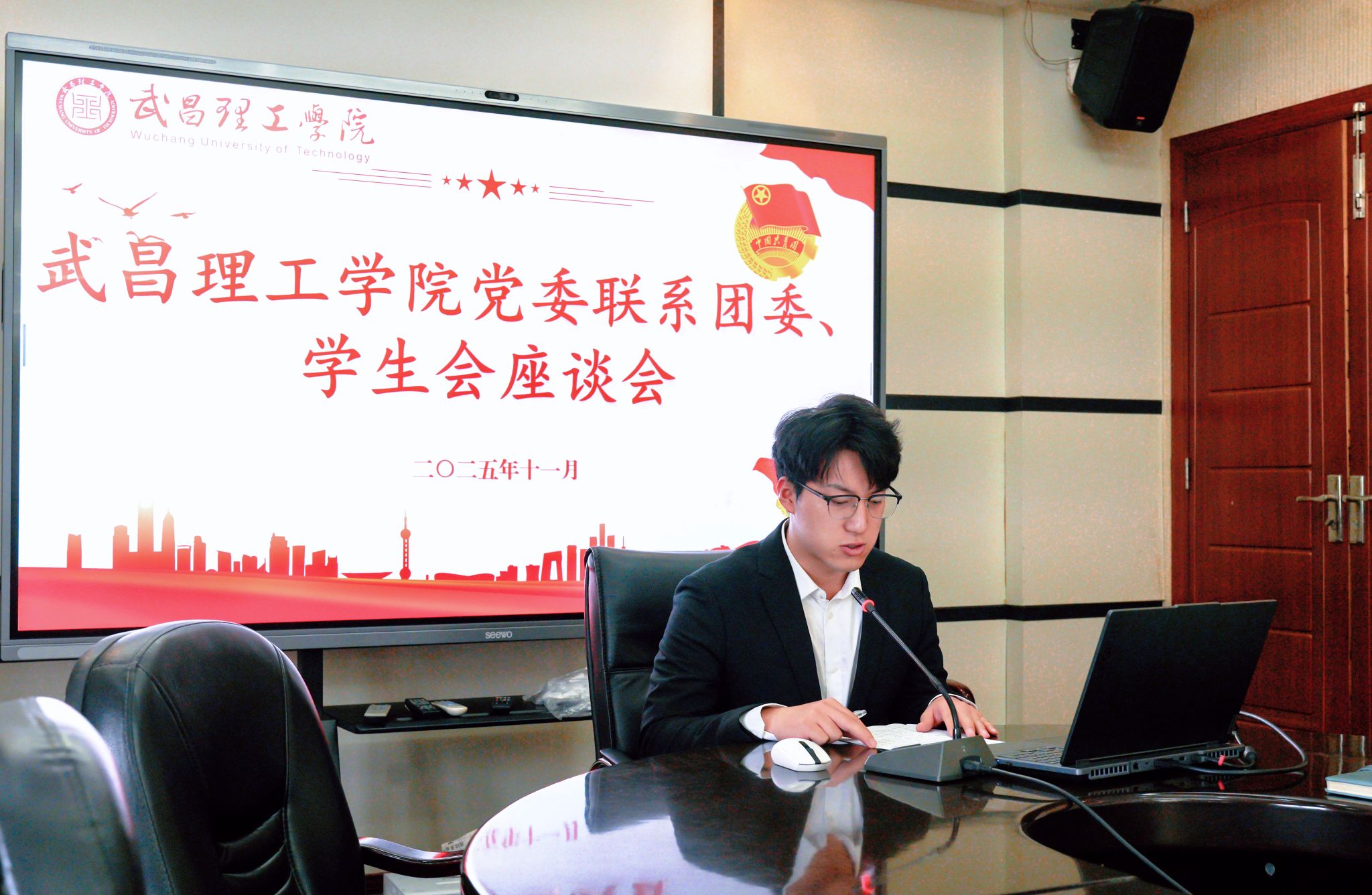 中南在线11月6日消息(记者 周黎 通讯员 邢鲍博 陈可欣 卢延杰 刘天乐 报道)11月4日,武昌理工学院2025年党委联系团委、学生会座谈会在行政楼612会议室举行。校党委书记高建勋,校长助理李金永,学工部、就业中心负责人,各学院团委书记,校、院两级学生会执行主席及校社团指导中心主任参会。会议由校团委副书记李玮主持。