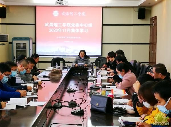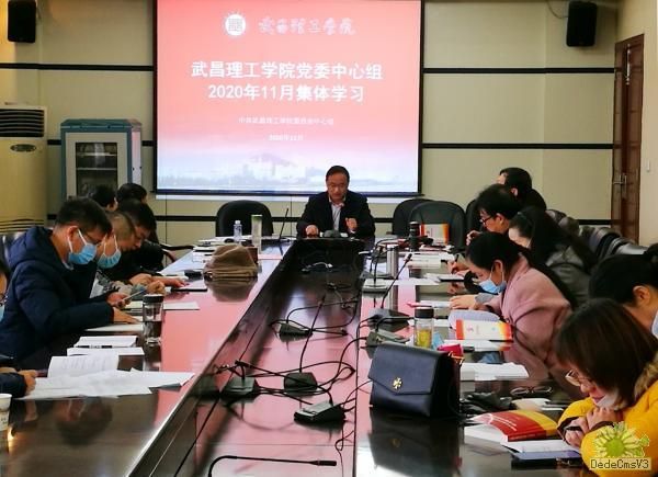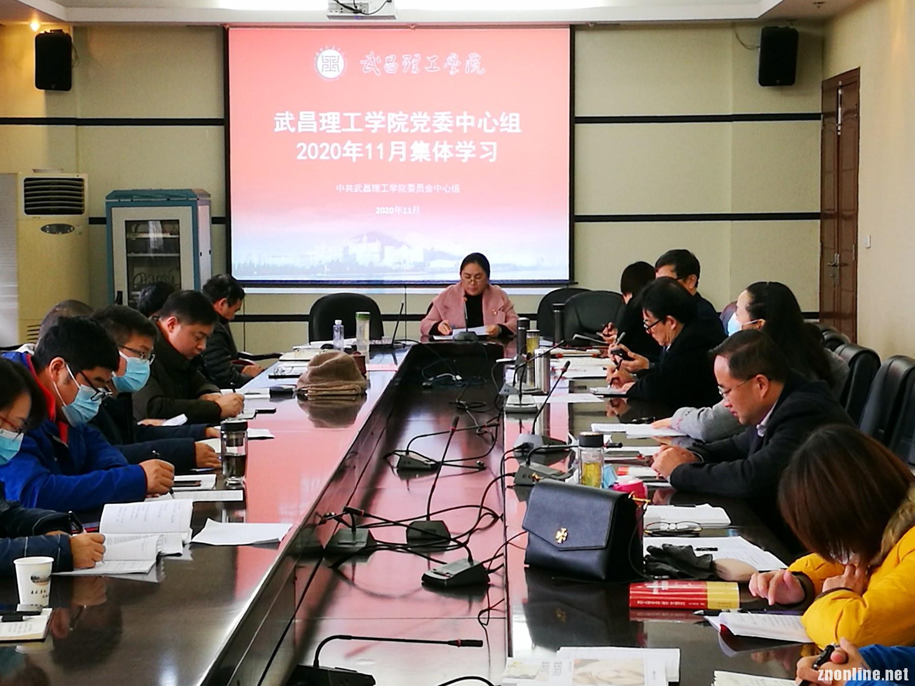 中南在线11月27日消息(记者 祝琳 报道)11月25日上午,武昌理工学院党委中心组举办11月份集体学习暨读书班专题学习会,此次学习会的主题是深入学习贯彻党的十九届五中全会精神,巩固深化“不忘初心、牢记使命”主题教育成果,推动学校事业又好又快发展。会议由校党委书记汪继平主持。