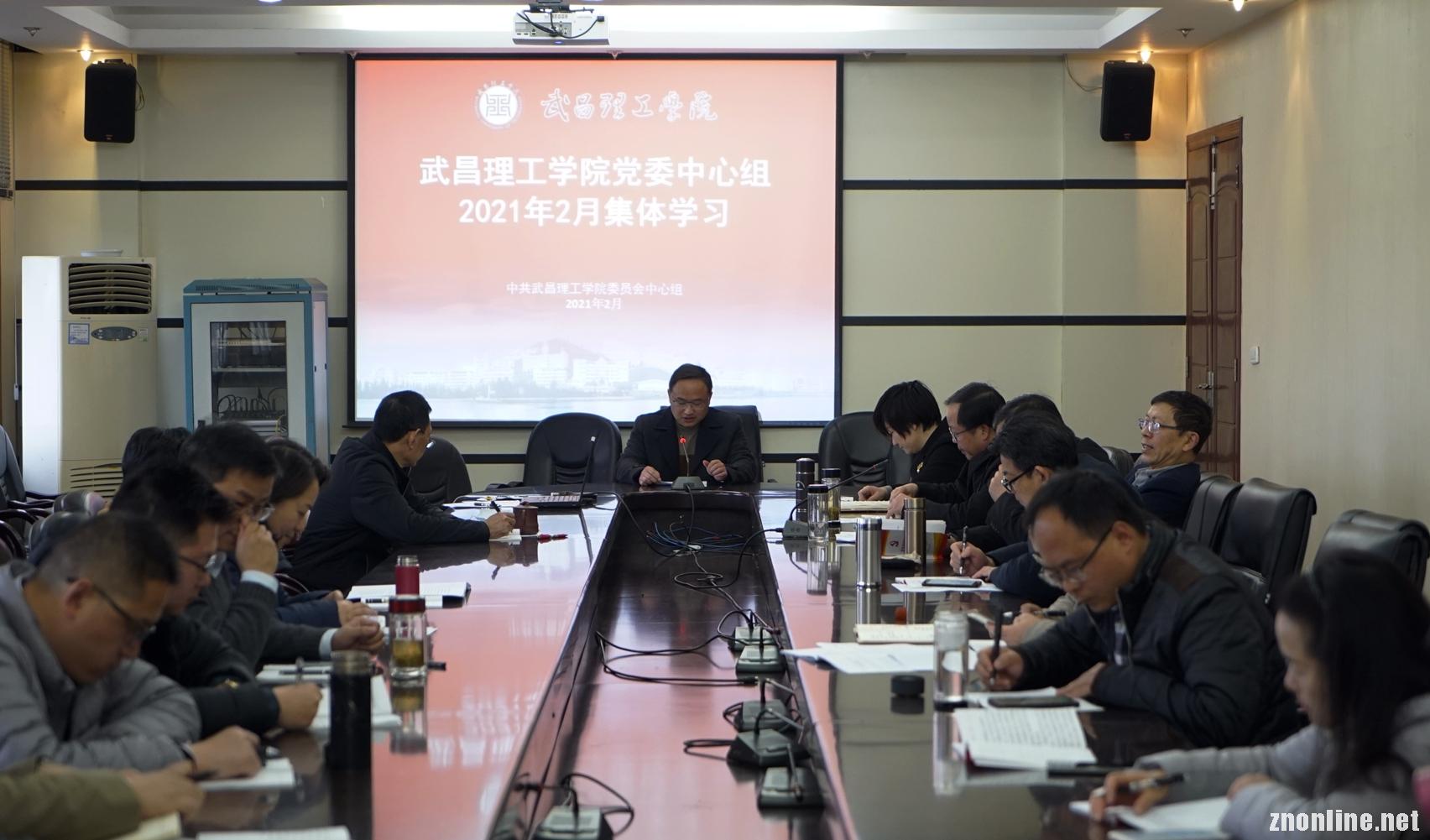中南在线2月28日消息(记者 祝琳 报道)2月25日上午,武昌理工学院党委中心组举行集体学习,重点学习了习近平总书记在省部级主要领导干部学习贯彻党的十九届五中全会精神专题研讨班开班式上的重要讲话精神、在十九届中央纪委五次全会上的重要讲话精神,并围绕“深入学习坚决贯彻党的十九届五中全会精神,聚焦学校发展真抓实干”这一主题,展开集中学习交流。校党委书记汪继平同志主持会议。校党委理论学习中心组全体成员参加会议。