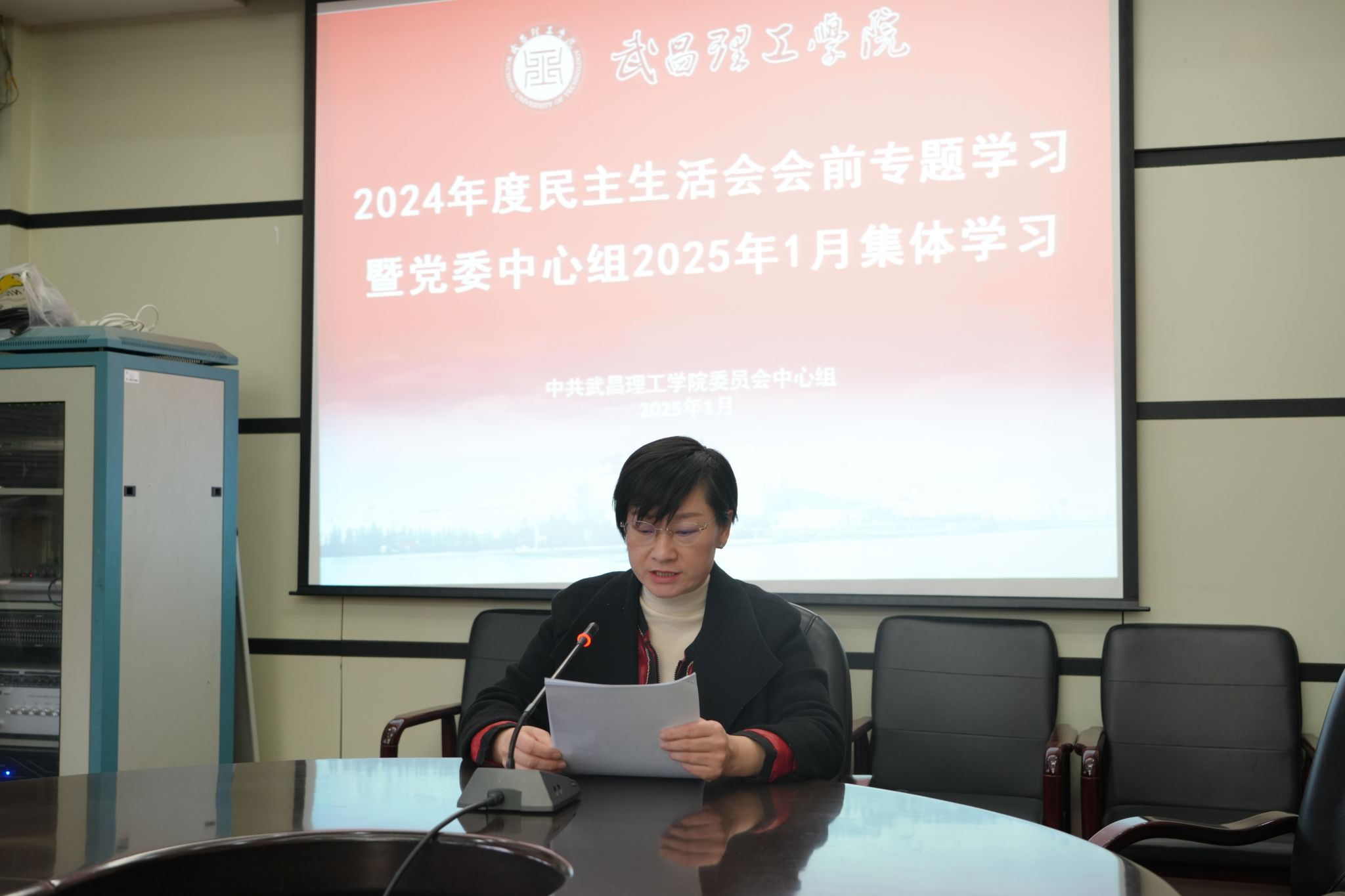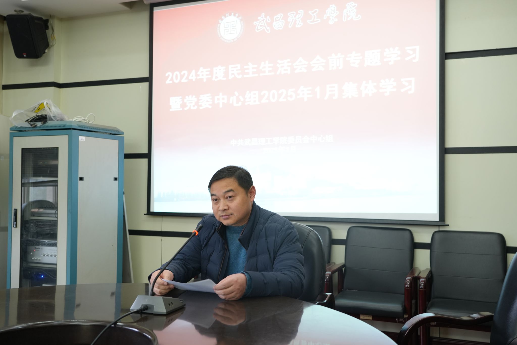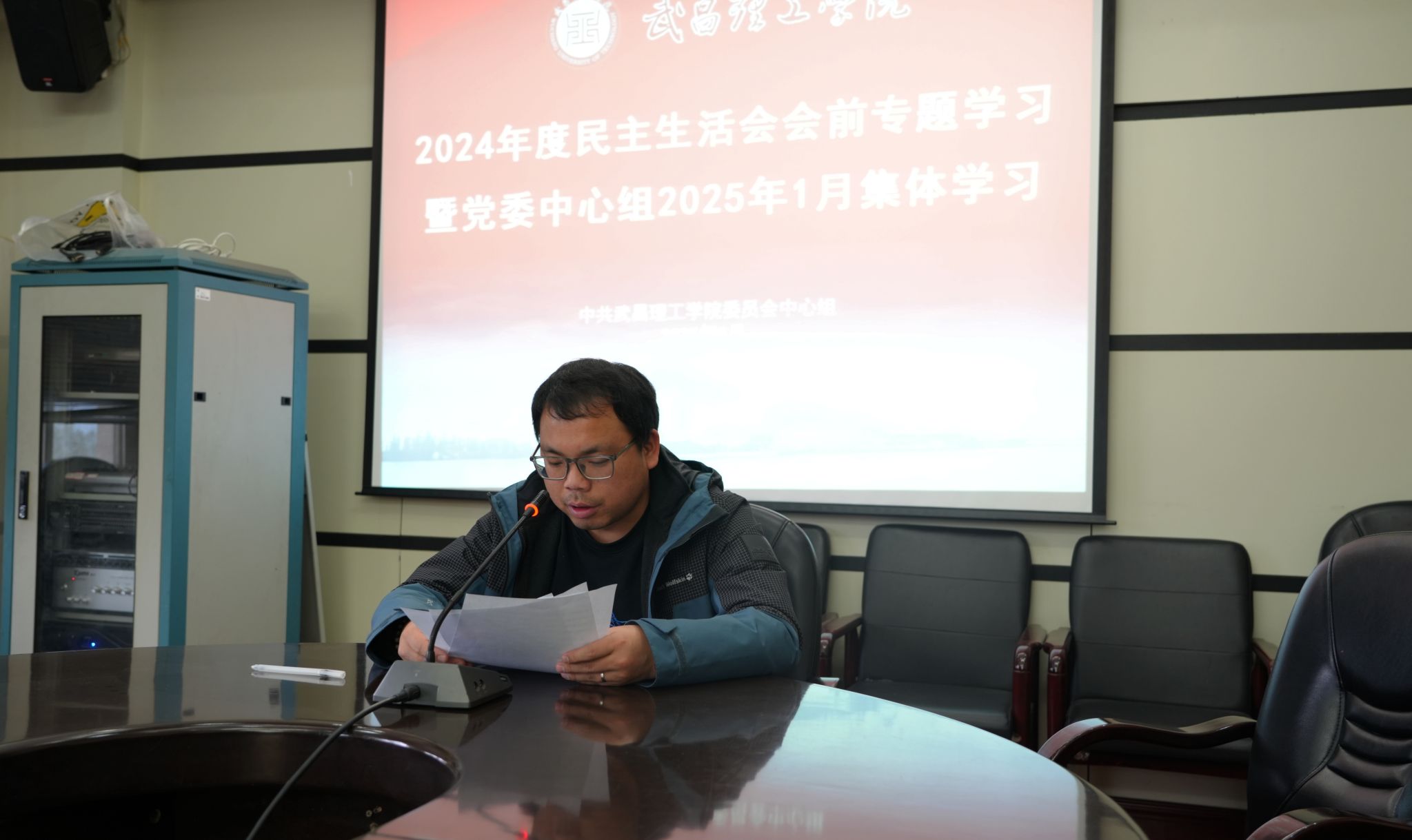 中南在线1月15日消息(记者 祝琳 报道)1月14日上午,武昌理工学院举行2024年度民主生活会前专题学习暨党委理论学习中心组2025年1月集体学习会。校党委书记汪继平主持会议。