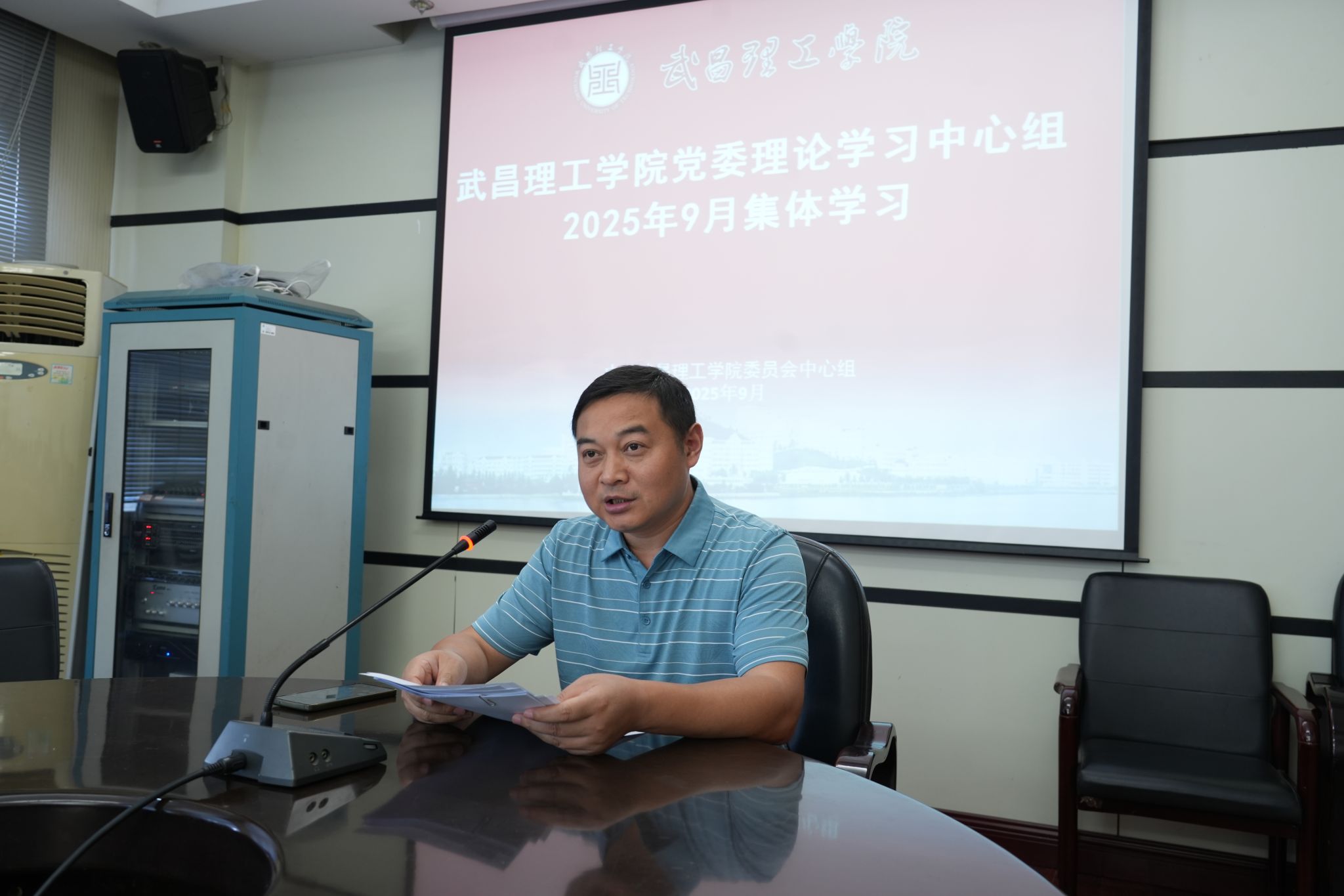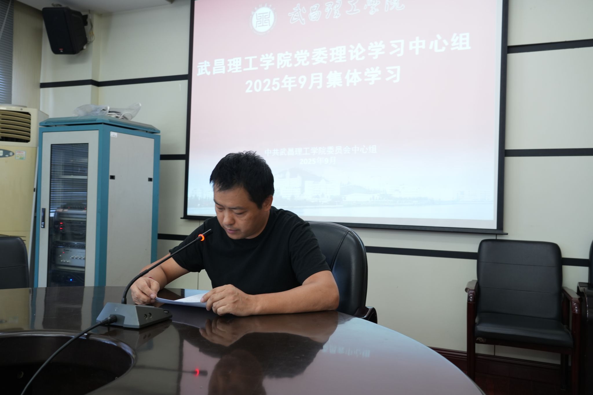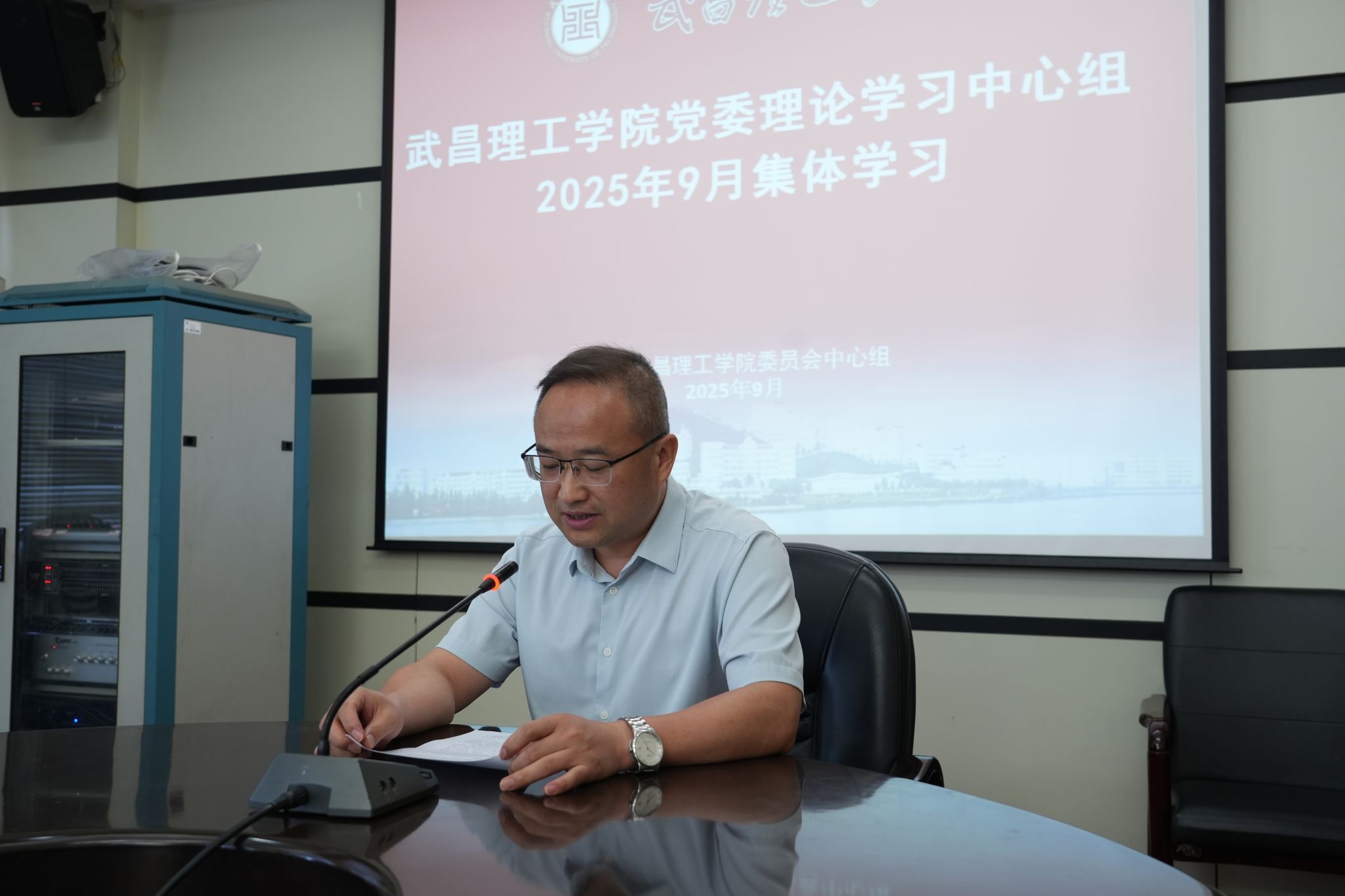 中南在线9月4日消息(记者 祝琳 报道)9月3日上午,武昌理工学院党委理论学习中心组举行9月集体学习,集中观看了纪念中国人民抗日战争暨世界反法西斯战争胜利80周年大会直播,深入学习习近平总书记近期重要讲话精神和省级层面重要文件精神、会议精神。校党委书记高建勋主持会议。