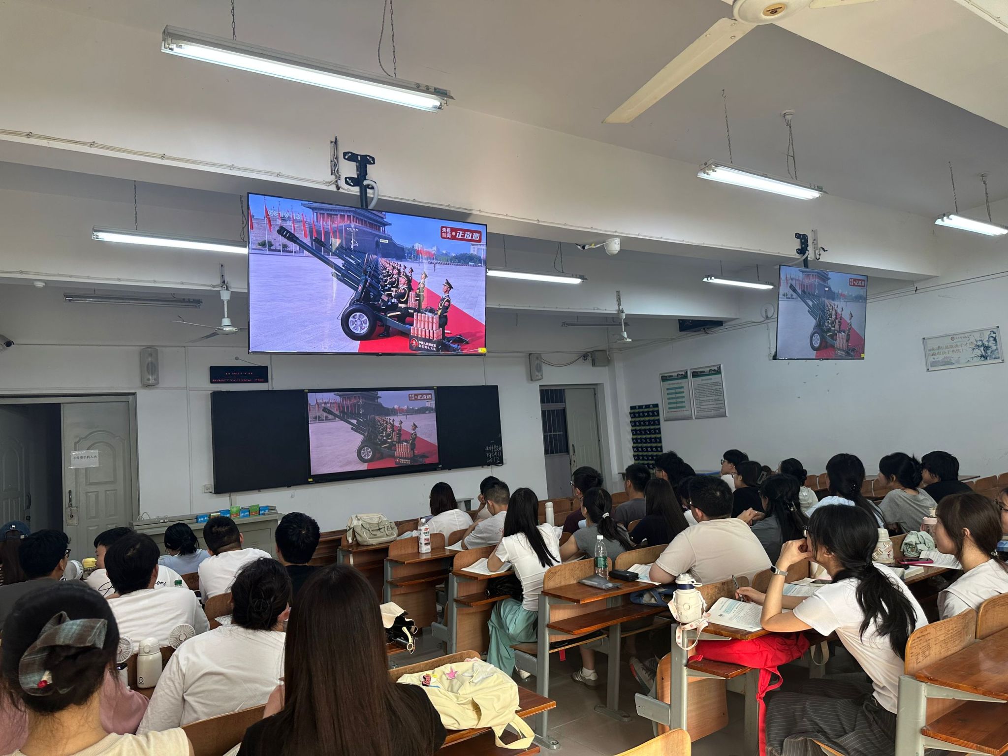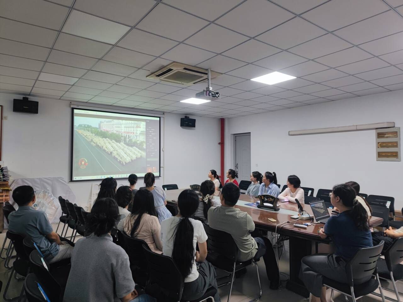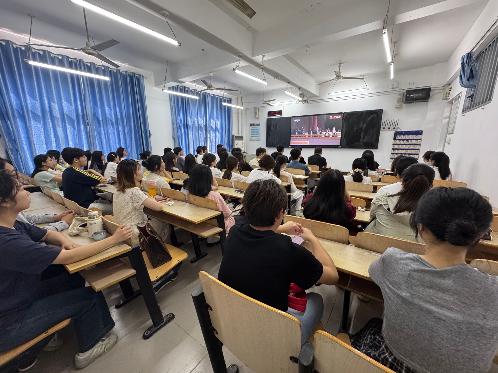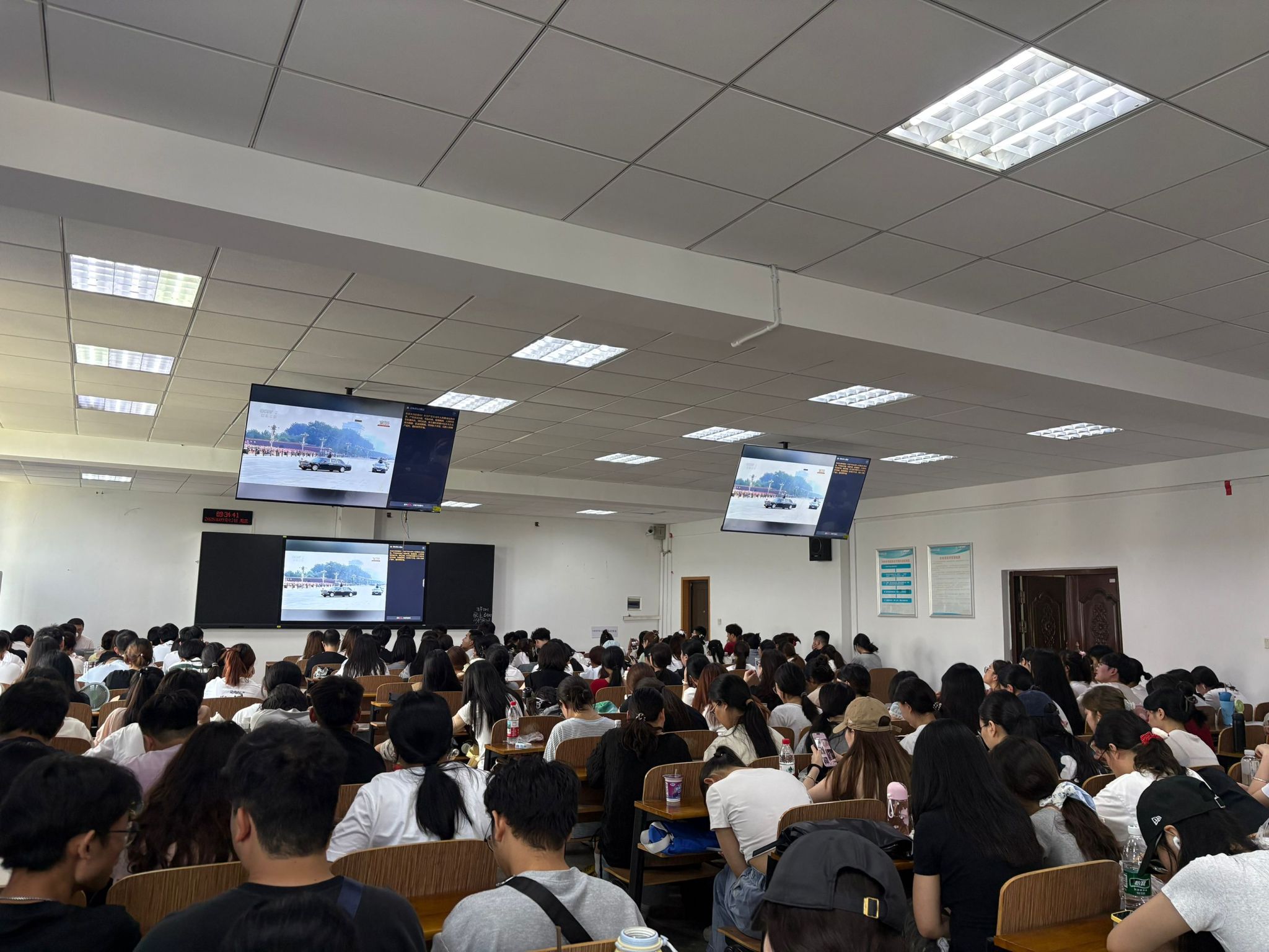 各党总支、直属党支部在会议室、教室、报告厅组织师生同步收看,使此次爱国主义教育覆盖课堂内外与线上线下,还组织开展了即时研讨与交流。