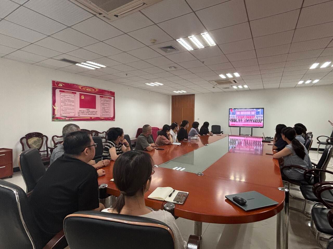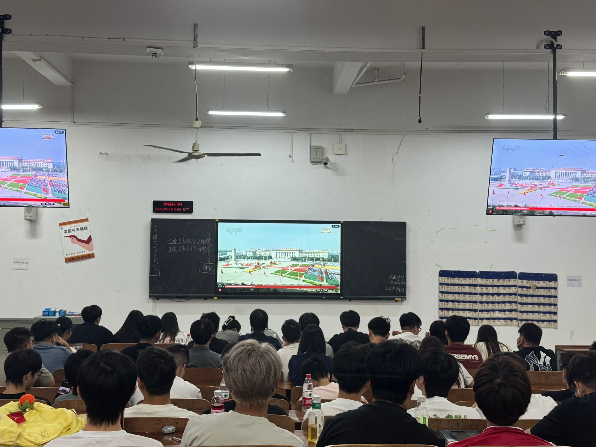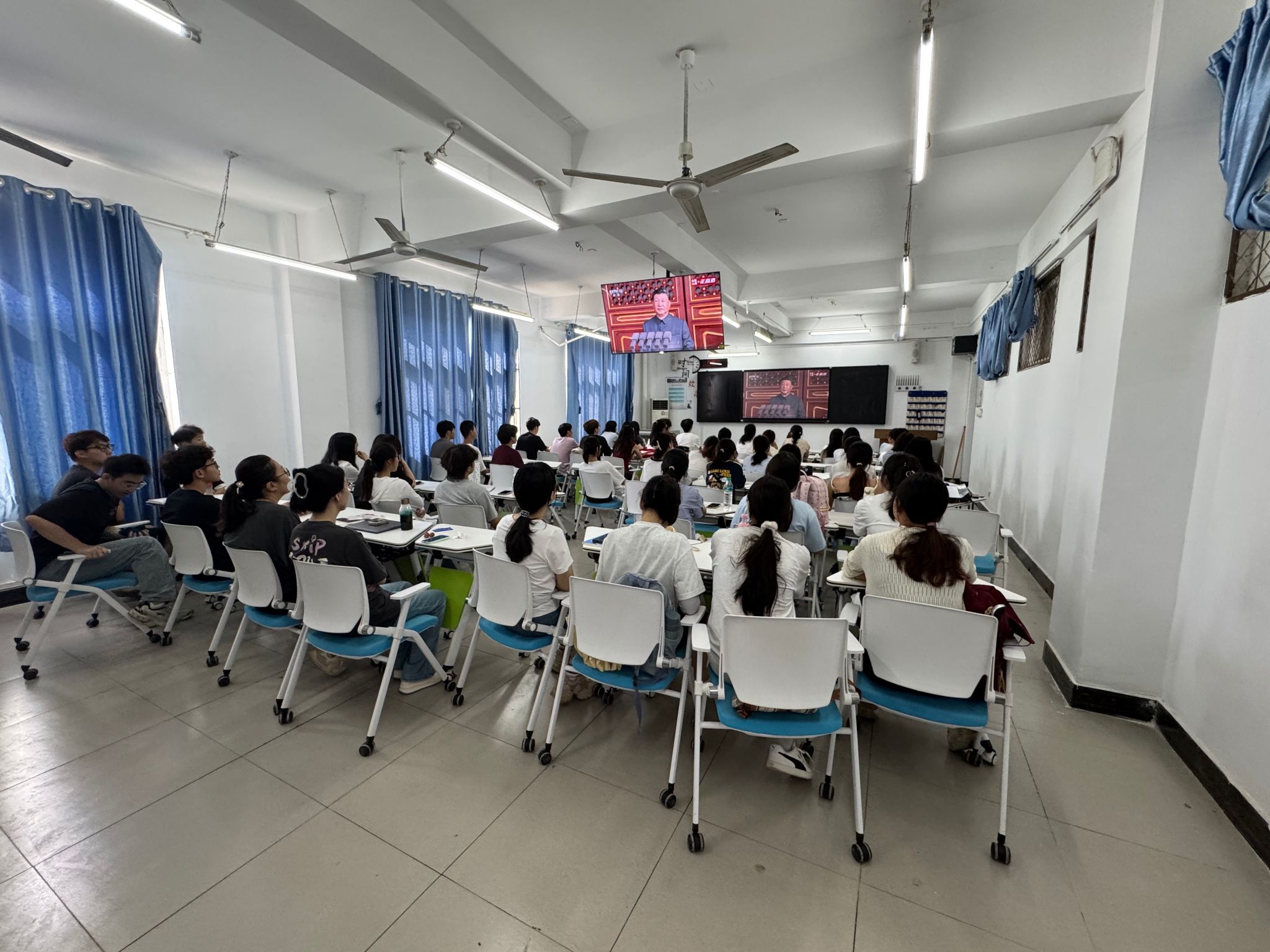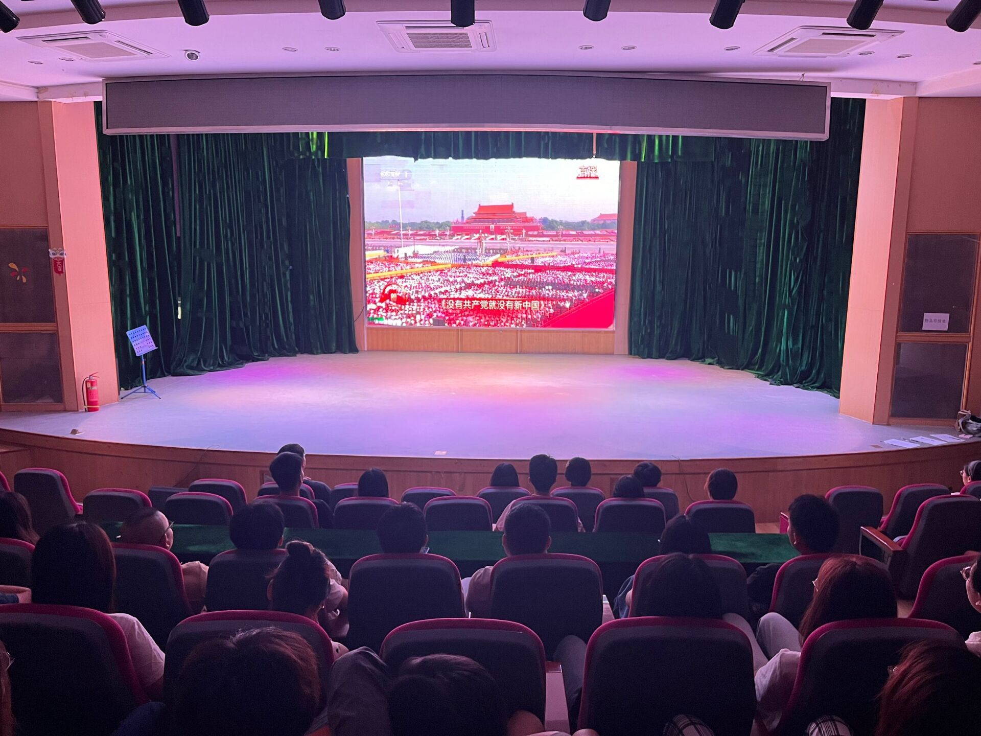 各党总支、直属党支部在会议室、教室、报告厅组织师生同步收看,使此次爱国主义教育覆盖课堂内外与线上线下,还组织开展了即时研讨与交流。