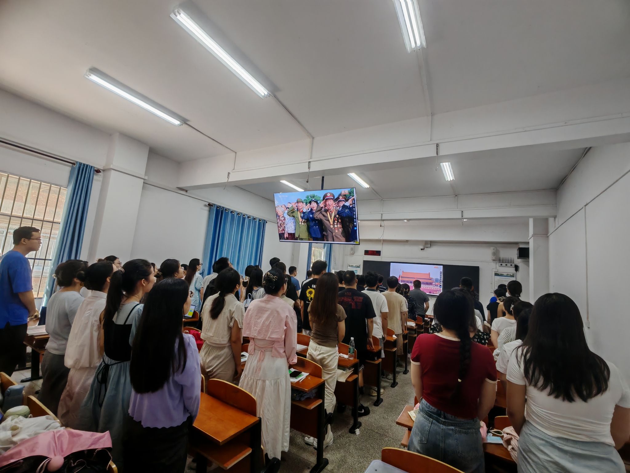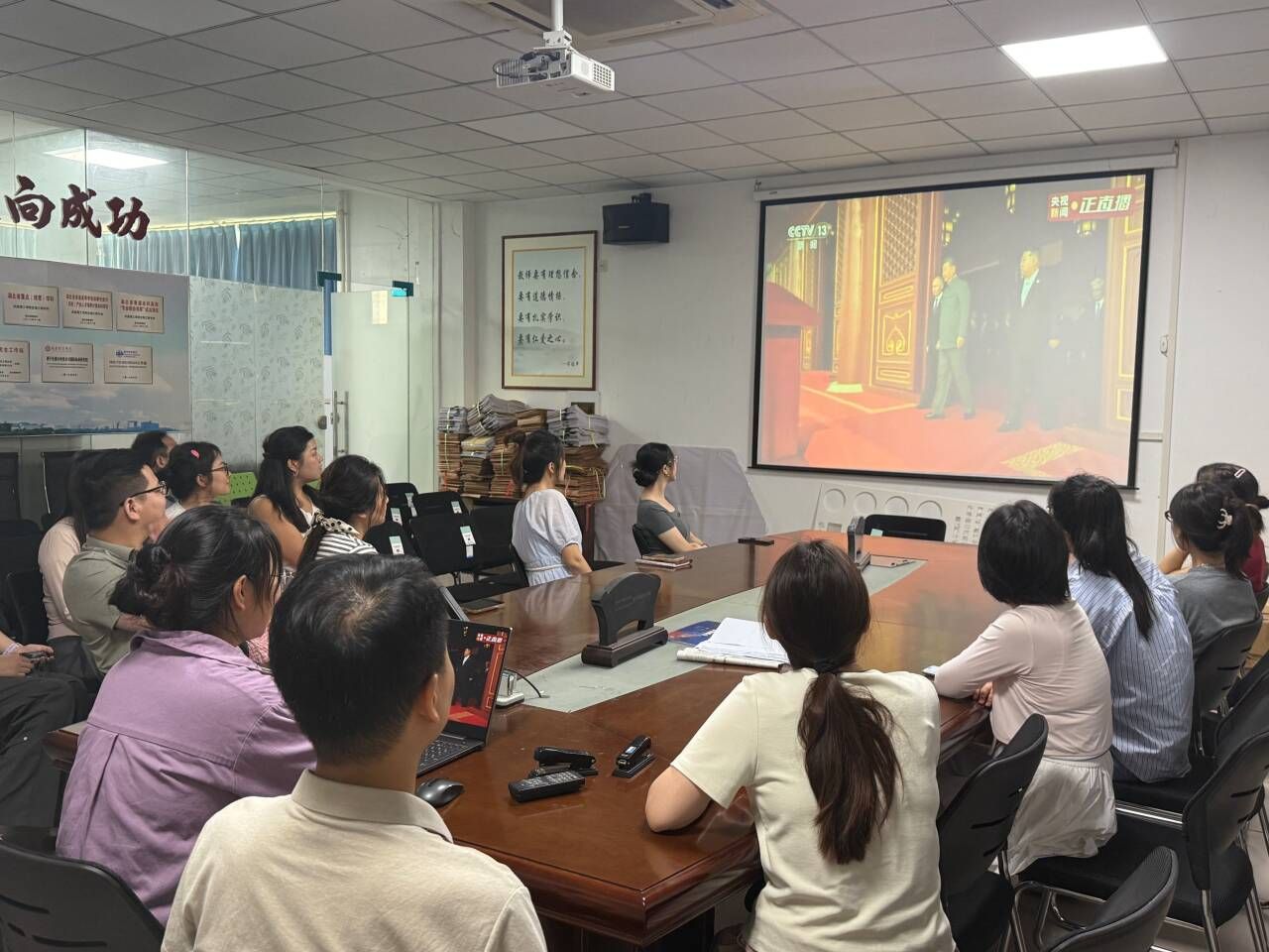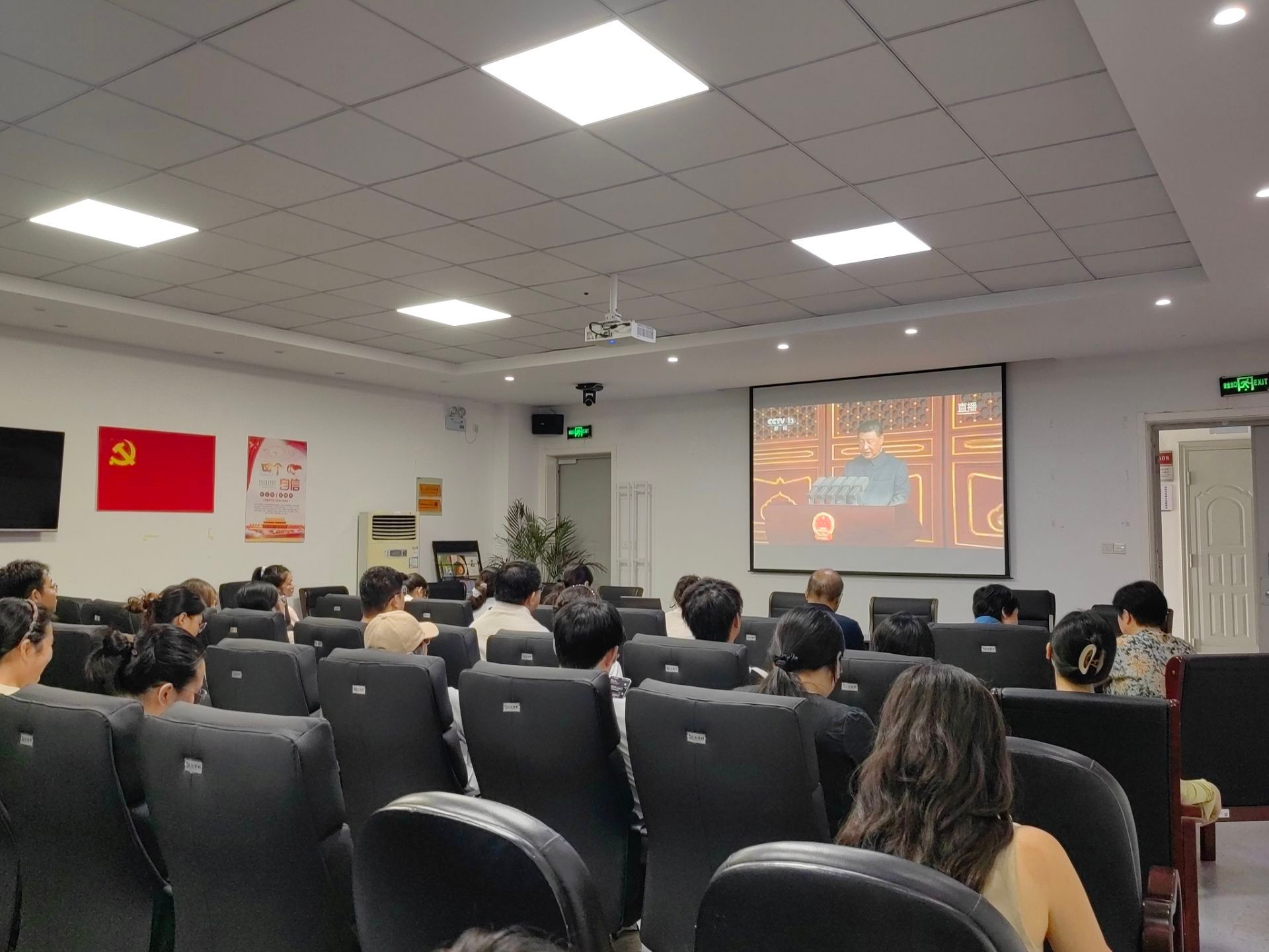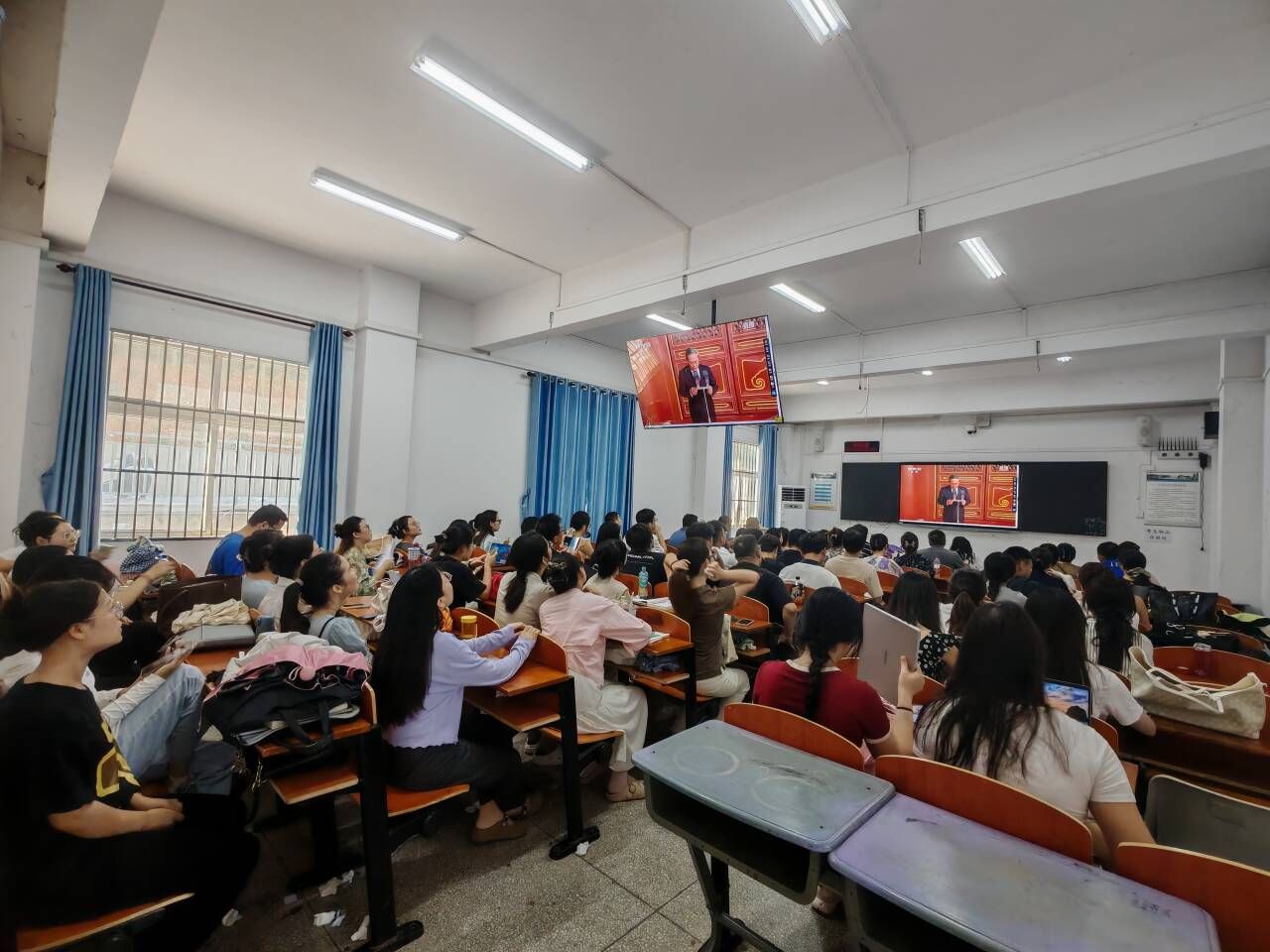 各党总支、直属党支部在会议室、教室、报告厅组织师生同步收看,使此次爱国主义教育覆盖课堂内外与线上线下,还组织开展了即时研讨与交流。
