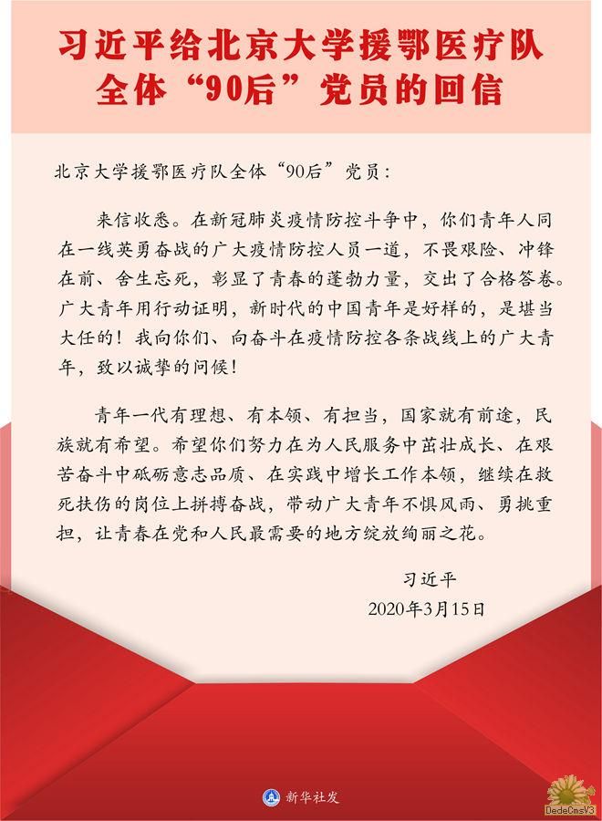 习近平给北京大学援鄂医疗队全体“90后”党员的回信