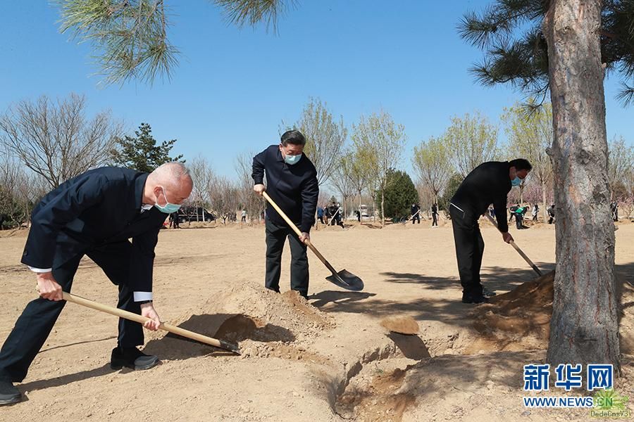 4月3日,党和国家领导人习近平、李克强、栗战书、汪洋、王沪宁、赵乐际、韩正、王岐山等来到北京市大兴区旧宫镇参加首都义务植树活动。这是习近平同大家一起植树。 新华社记者 李学仁 摄