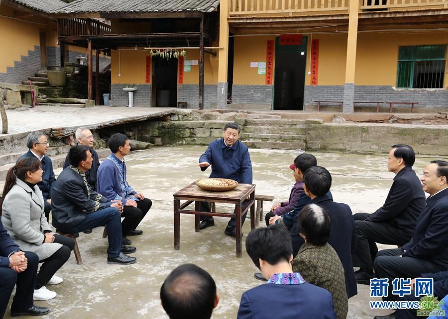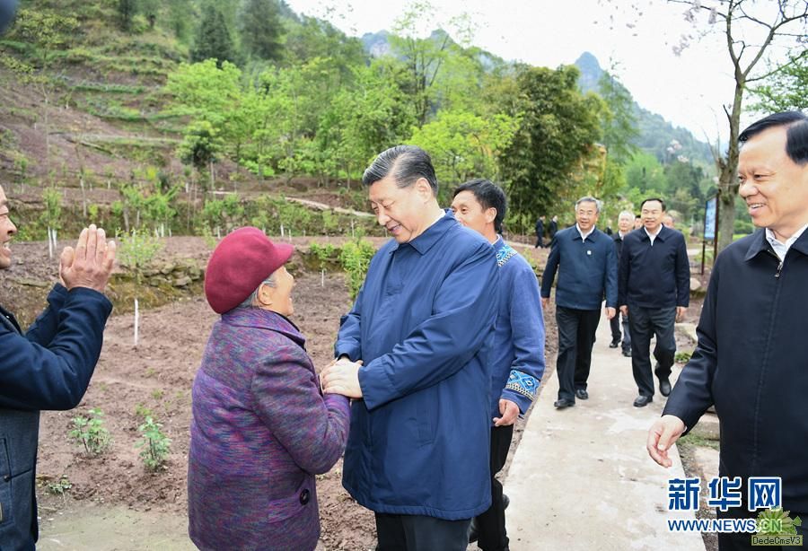 这是4月15日下午,习近平在石柱土家族自治县中益乡华溪村看望贫困户谭登周一家。 新华社记者 谢环驰 摄