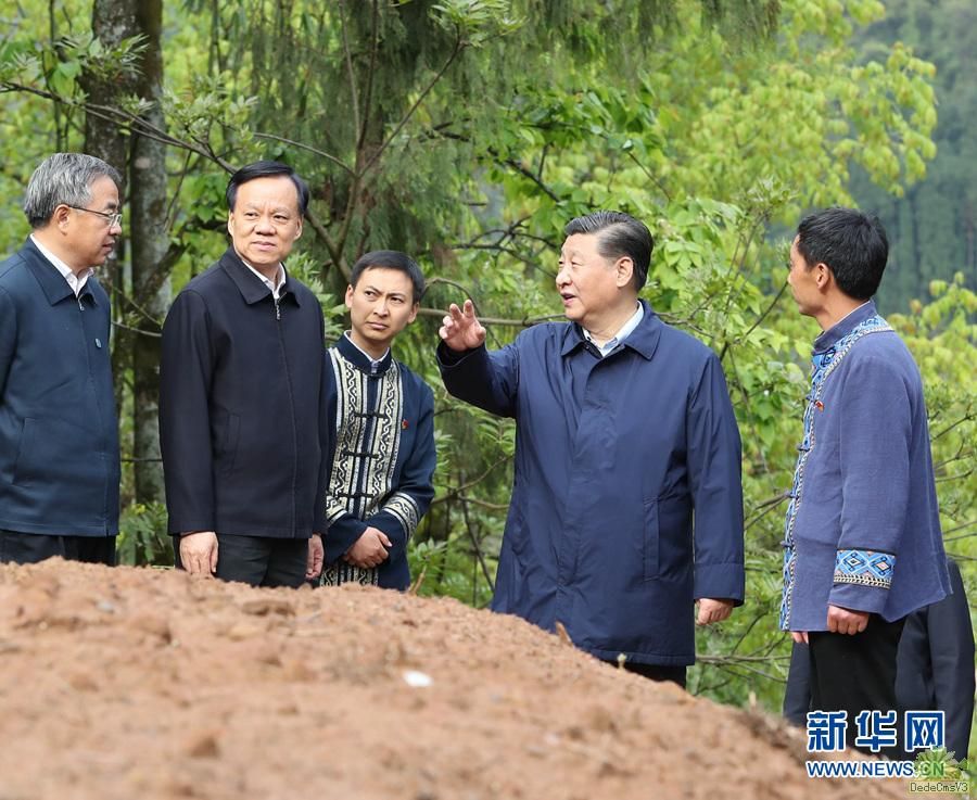 这是4月15日下午,习近平在石柱土家族自治县中益乡华溪村察看自然环境、村容村貌。 新华社记者 王晔 摄