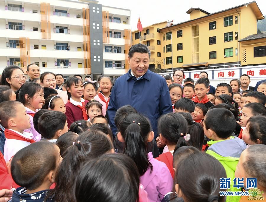 习近平首先来到中益乡小学。学校操场上,小学生们正在开展课外文体活动。看到总书记来了,学生们围拢过来,纷纷问习爷爷好,总书记高兴地同大家交谈,询问他们学习和生活情况。中益乡地处大山深山之中,群众居住比较分散,孩子上学是个难题。习近平指出,“两不愁三保障”,很重要的一条就是义务教育要有保障。再苦不能苦孩子,再穷不能穷教育。要保证贫困山区的孩子上学受教育,有一个幸福快乐的童年。习近平走进师生食堂,仔细察看餐厅、后厨,了解贫困学生餐费补贴和食品安全卫生情况。习近平嘱咐学校和老师既要当好老师,又要当好临时家长,把学生教好、管好。要把安全放在第一位,确保学生在学校学、住、吃都安全,让家长们放心。他希望老师们扎根山区,献身乡村教育事业,为群众脱贫贡献一份力量。