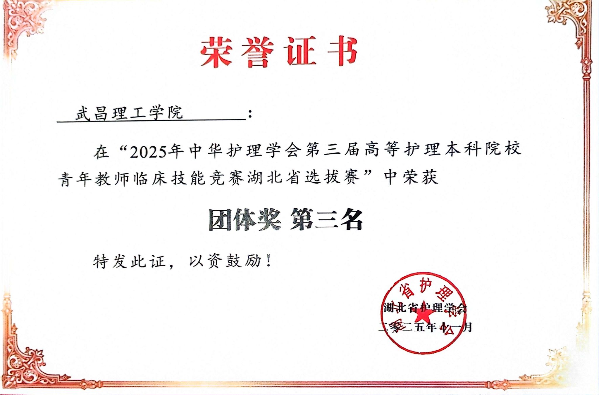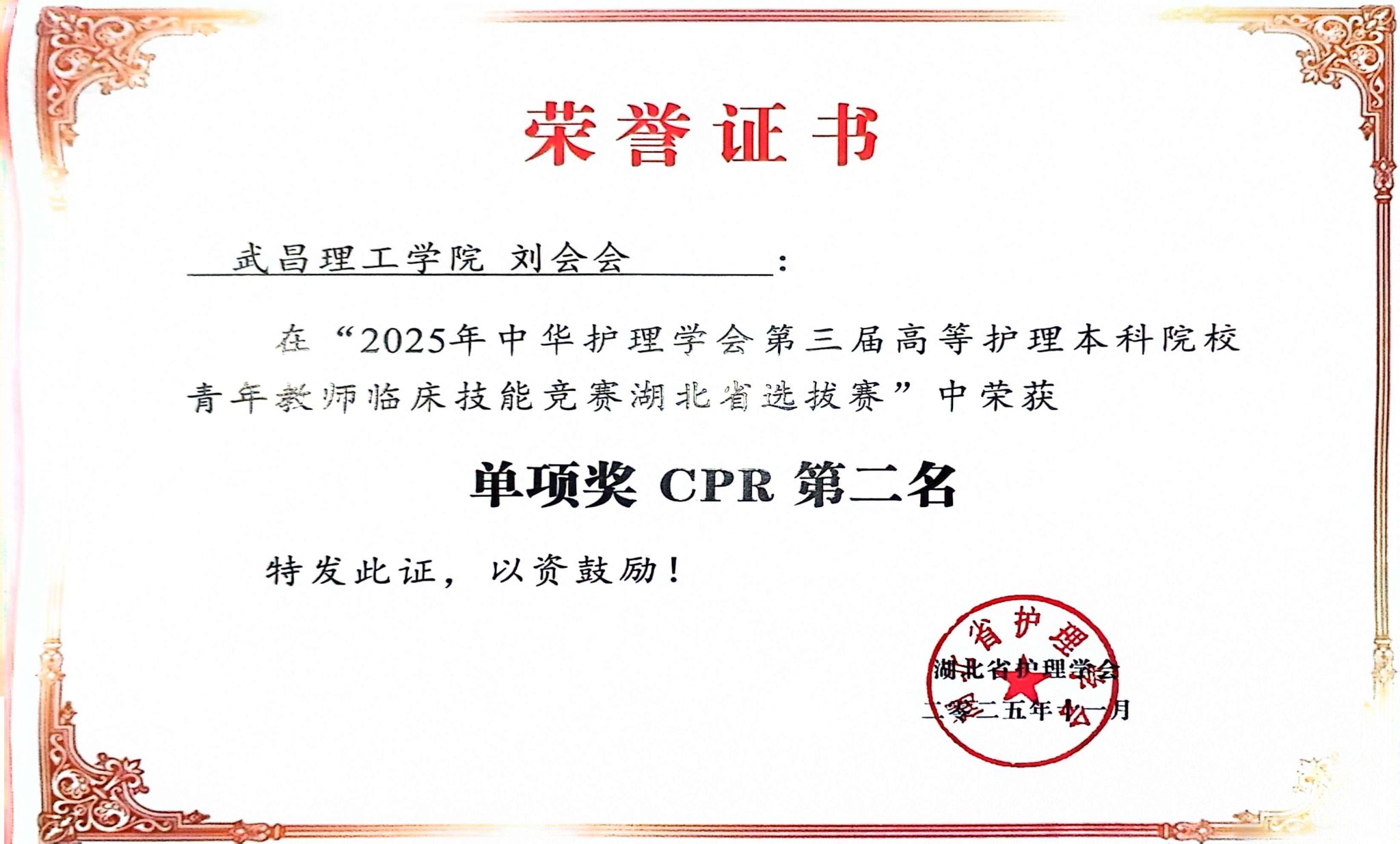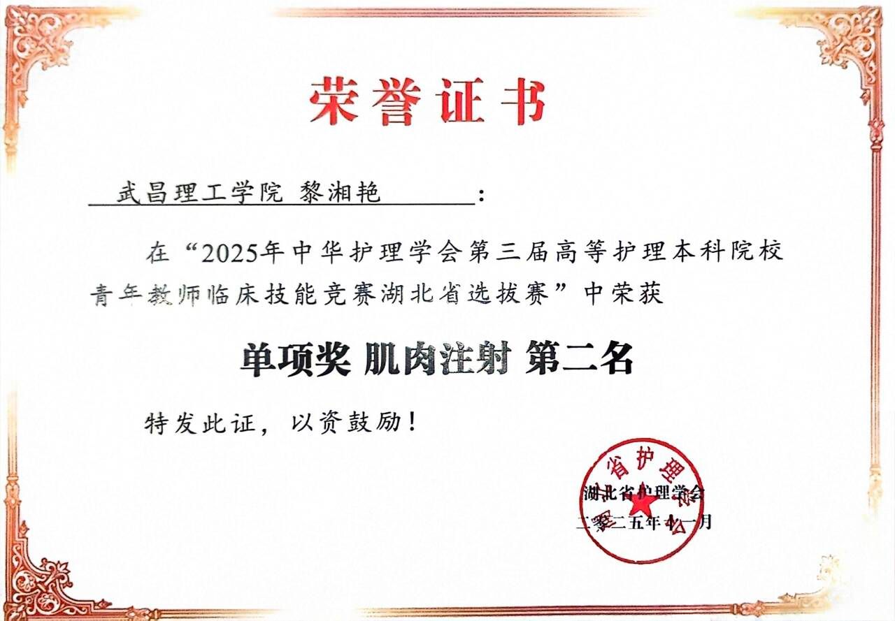 中南在线11月13日消息(特约通讯员 许翠 刘会会 报道 )近日,2025年湖北省本科高校青年教师临床技能竞赛在武汉圆满落幕。武昌理工学院健康与护理学院选派优秀教师与武汉大学人民医院老师组成的三人团队凭借扎实的临床功底和出色的临场发挥,荣获团体三等奖的佳绩。其中,健康与护理学院黎湘艳老师和刘会会老师表现尤为突出,分别斩获“肌内注射”项目个人二等奖和“心肺复苏”项目个人二等奖,充分彰显了武昌理工学院青年教师卓越的专业技能与教学风采。