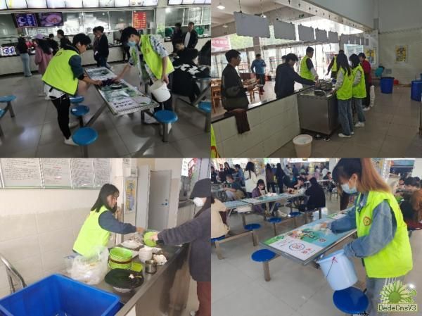 劳动是一首永恒的赞歌,不论职业大小,所获得的一切成果都是劳动者汗水与智慧的结晶。本次活动在武昌理工学院梅园、桂园两个食堂开展,共计有30位学生参加。志愿者分为两批,第一批志愿者在梅园食堂,他们在用餐高峰期,擦桌子、收拾餐具、拖地、处理食物残渣等;第二批则是在桂园食堂,用餐结束后,志愿者配合食堂工作者完成相关服务工作。