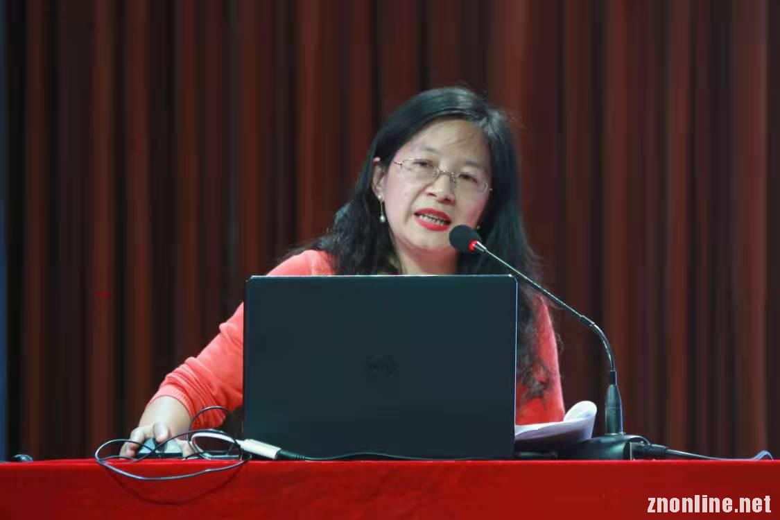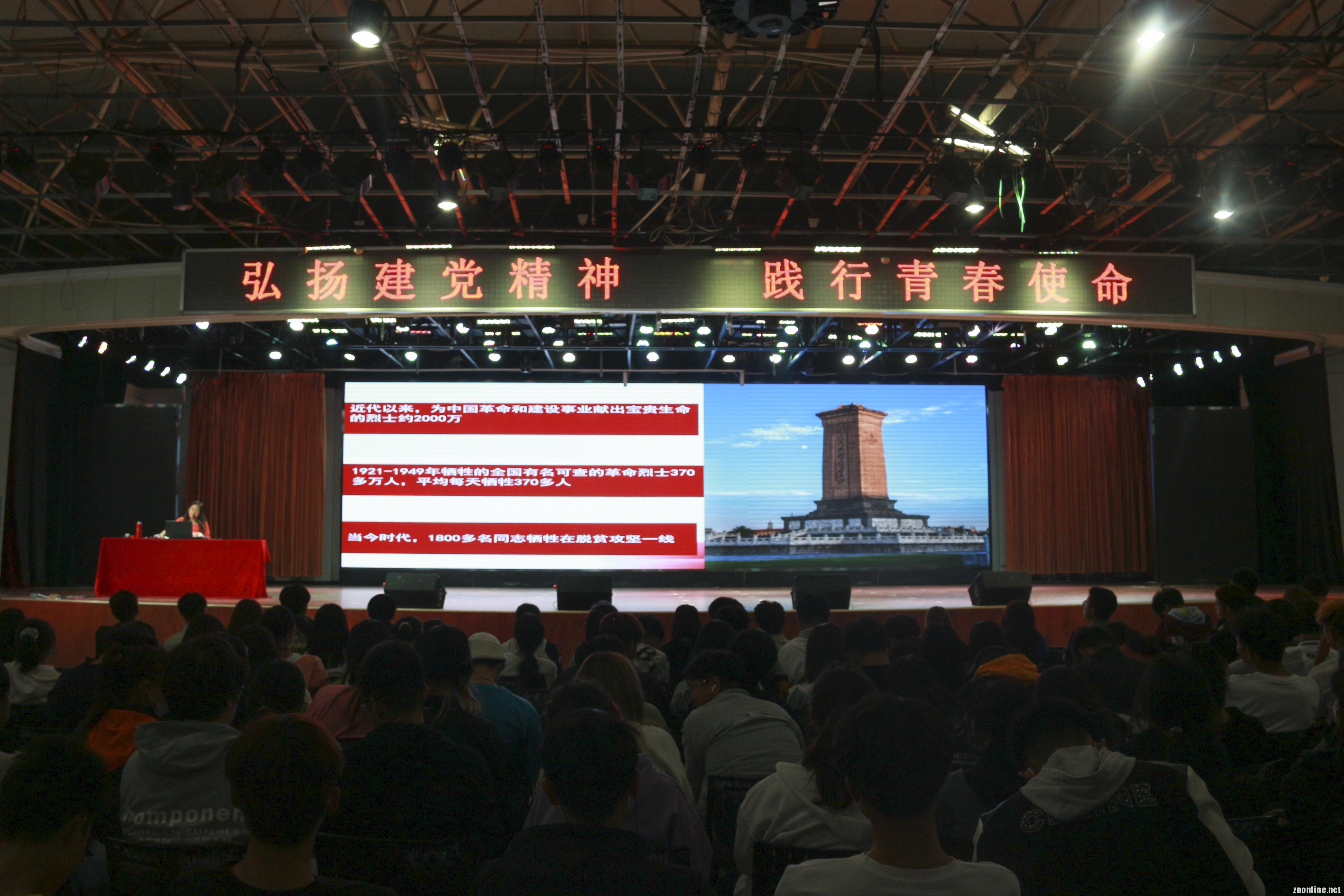 此次讲座由马克思主义学院张翠萍教授主讲,各学院学生代表参加了讲座。台下座无虚席,同学们全神贯注地聆听着老师的精彩演讲。此次讲座主要分为两个部分,一是弘扬建党精神,赓续红色血脉;二是践行初心使命,点亮青春底色。