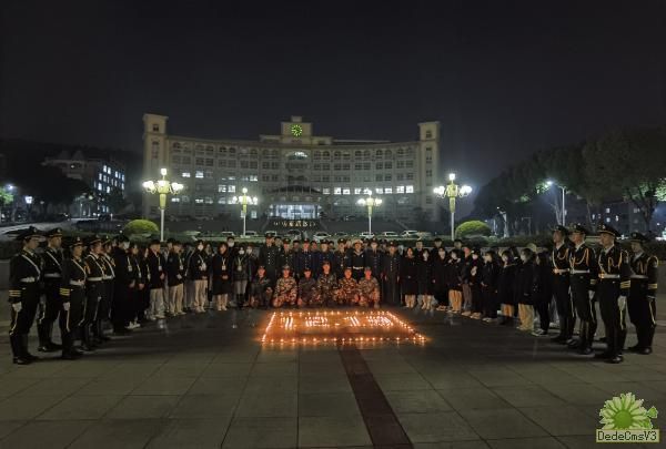 19点整,退伍军人俱乐部成员于成功广场进行进行点烛脱帽、默哀祈祷,同时到来的还有许许多多的武昌理工学院学子。蜡烛点亮学校上空,像是中国变得强大冲破了黑暗,退伍军人们将中国人民解放军誓词刻在脑海里,他们虽然退伍,但入伍的初心未曾忘记,正如同“退伍不退色、初心永不变。”