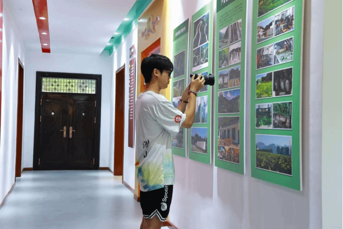 在水吼革命陈列展,珍贵史料如同一部立体的“红色教科书”。泛黄的革命文献,记录着当年党组织发展的艰辛;锈迹斑驳的武器,诉说着战斗的激烈;而当地群众支援红军的“独轮车”“土布衫”等实物,更是将“军民鱼水情”的历史场景生动还原。成员们放慢脚步、压低声音,以镜头为眼、以笔为媒,捕捉展品细节、记录历史温度,从全景呈现布局的宏观叙事,到特写聚焦文物划痕的微观洞察,力求用影像与文字,复刻这段可歌可泣的革命记忆。