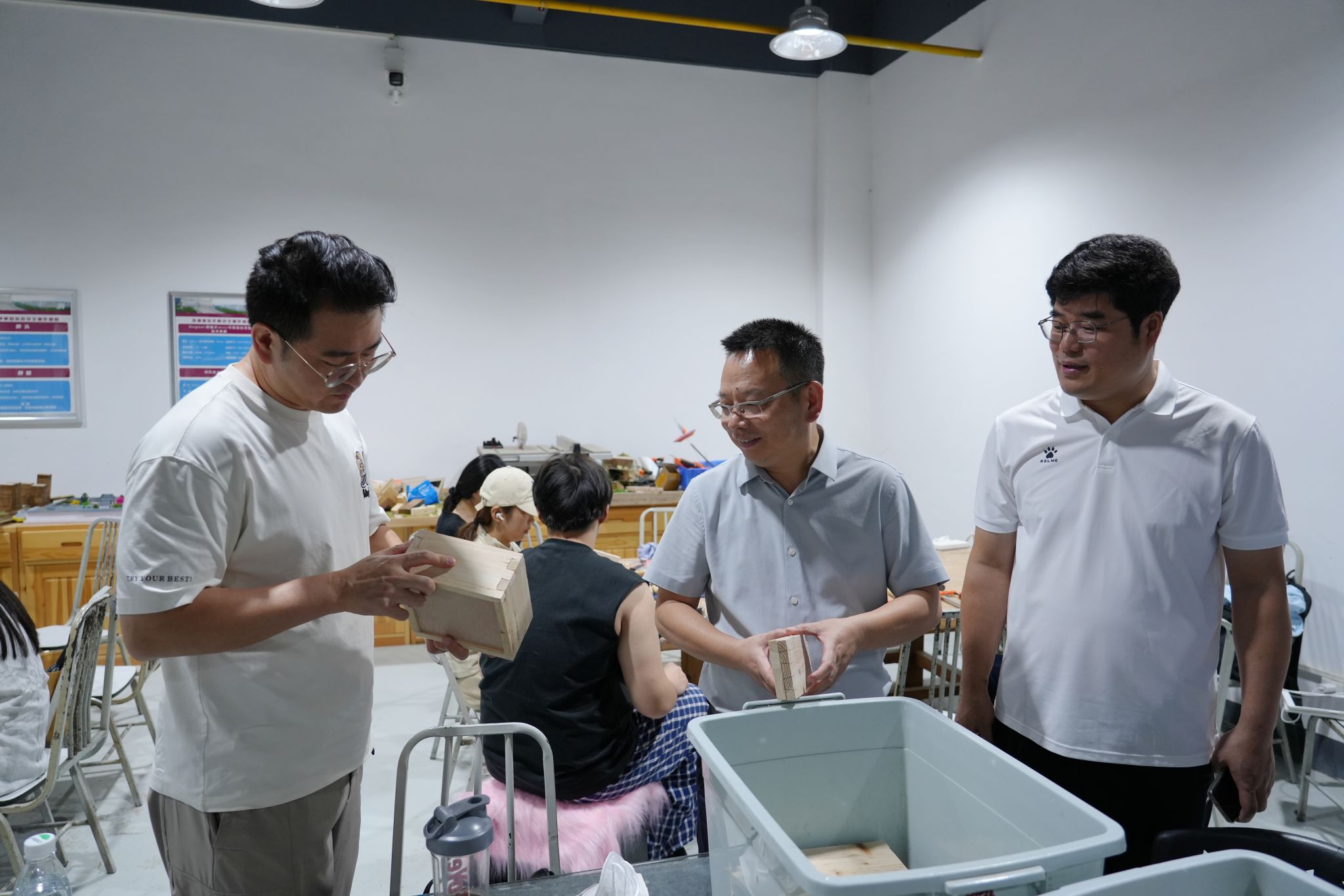 高建勋书记一行首先来到创意设计学院,实地参观了党员活动室和工艺美术大楼,细致查看了学生实践教学环境和创作成果,与师生亲切交流,深入了解实践教学环节和学生创新能力培养情况。