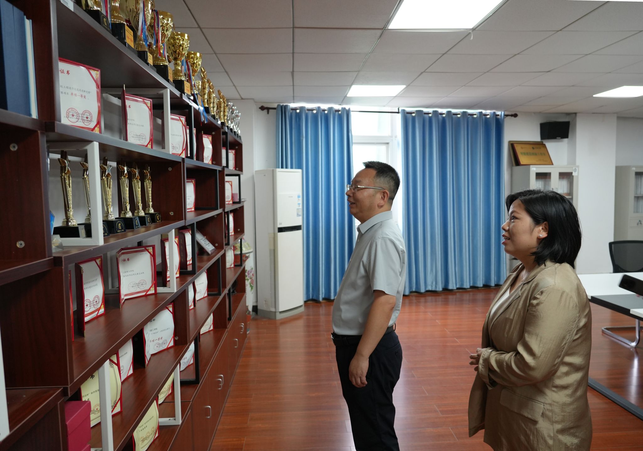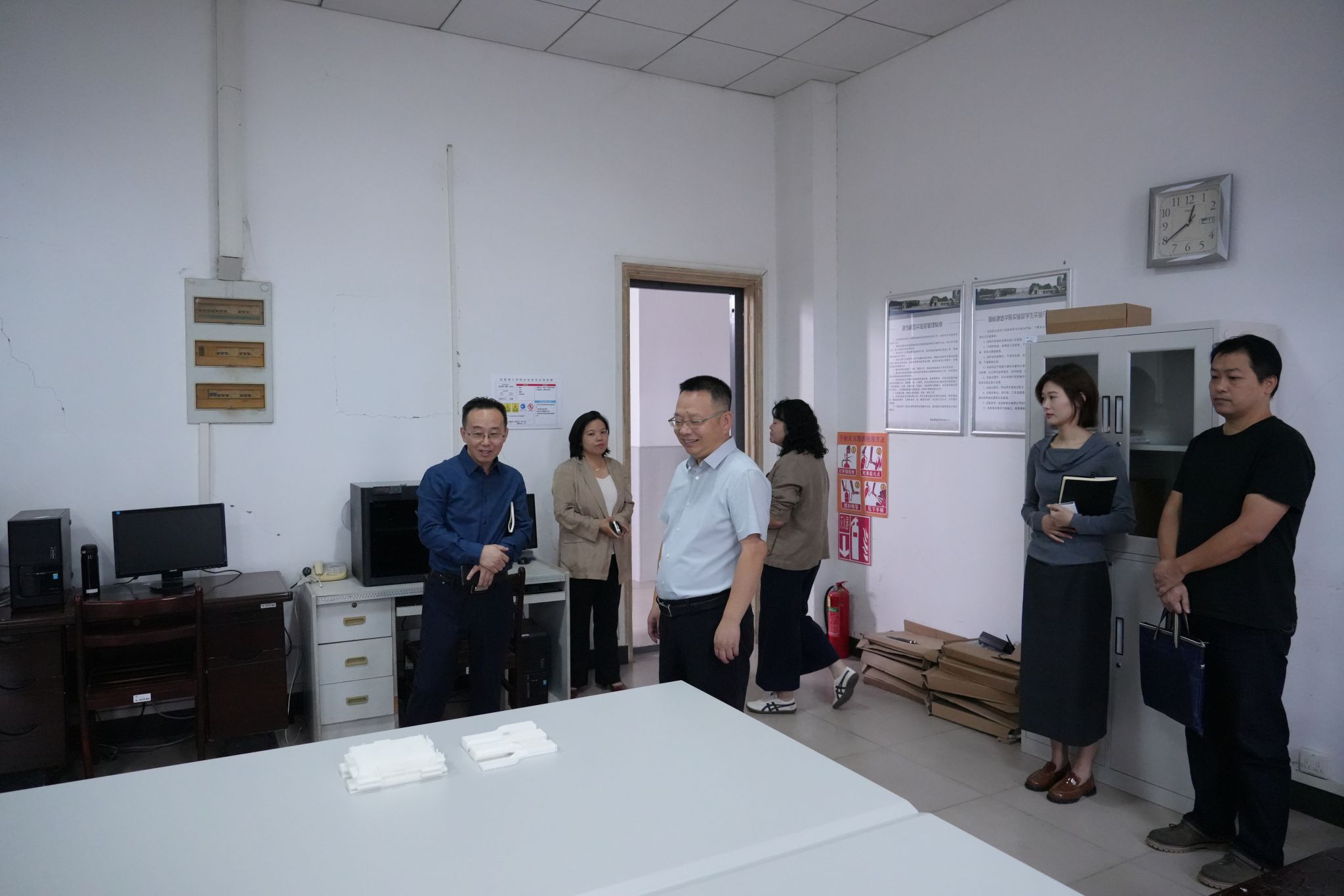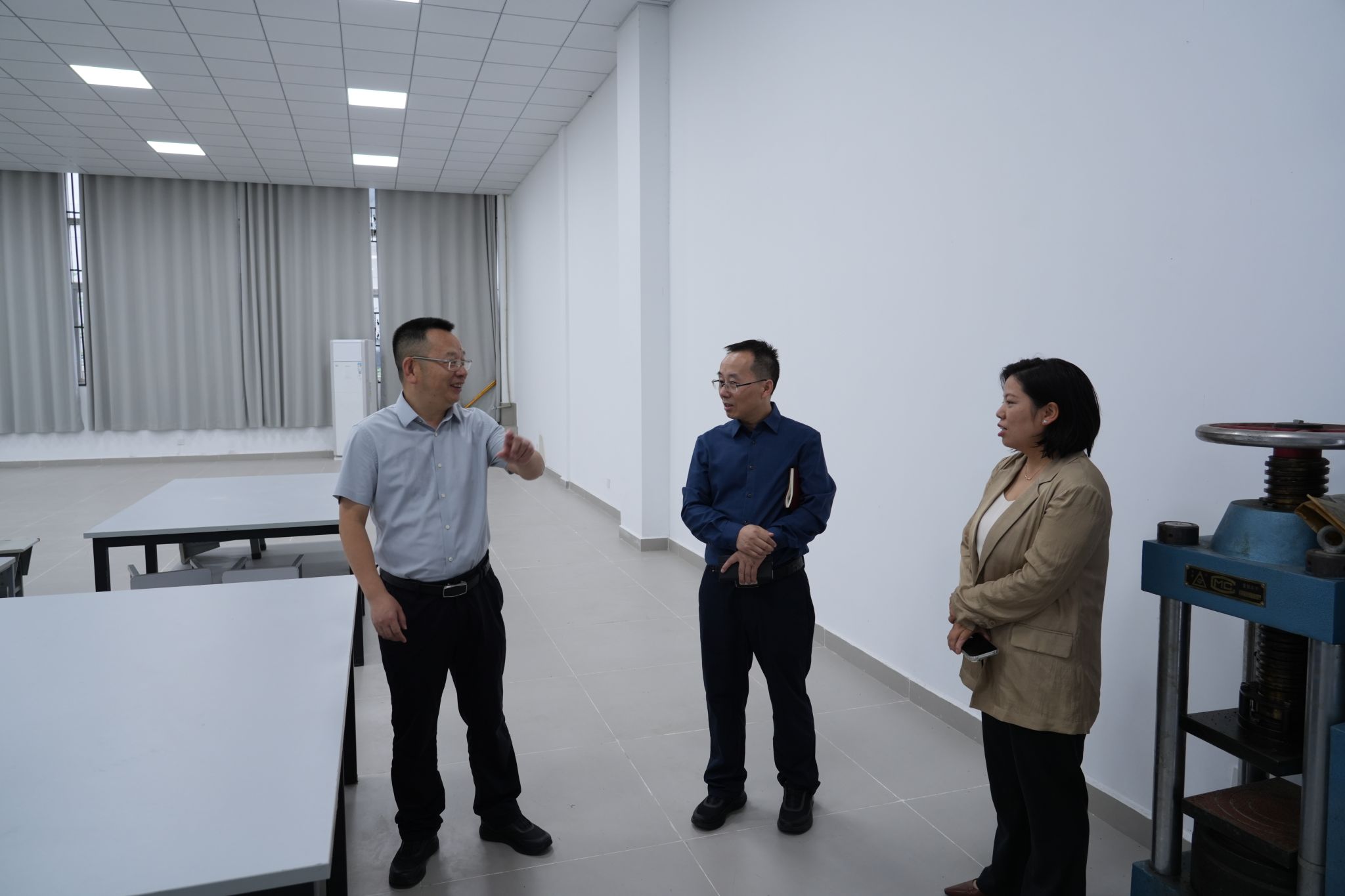 高建勋书记一行在智能建造学院领导班子的陪同下,实地考察了学院实验室,详细了解实验设施配置、实践教学开展等情况,对学院在改善办学条件、强化实践育人环节方面所做的努力表示认可。