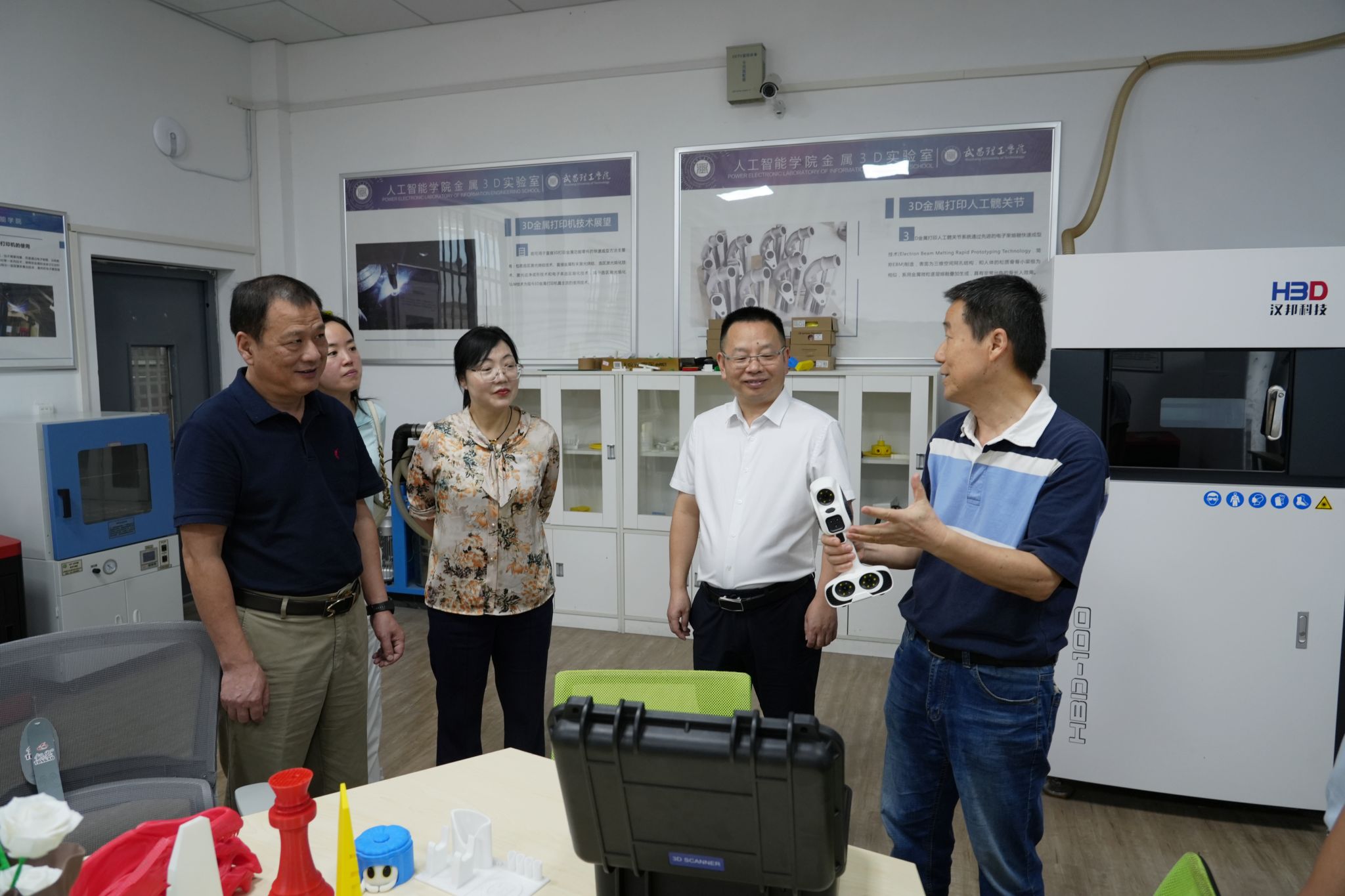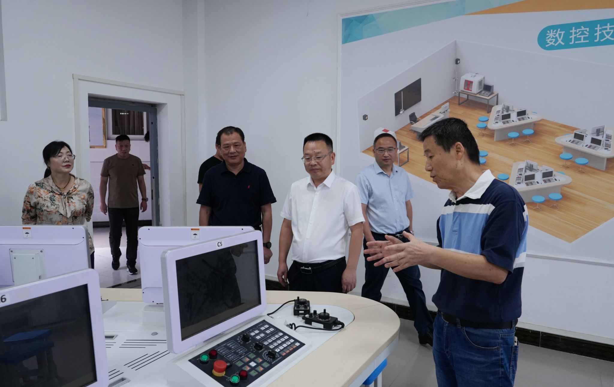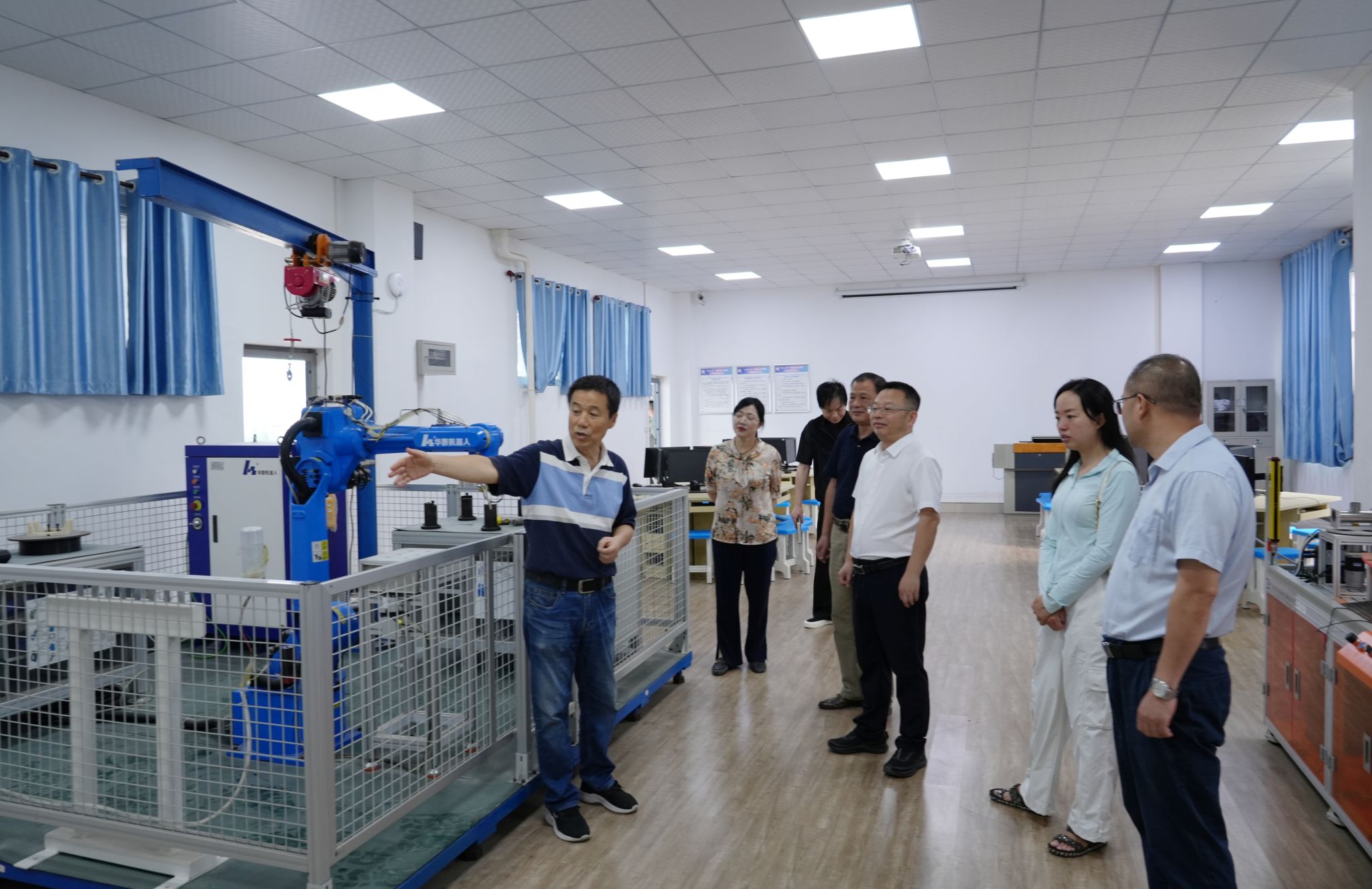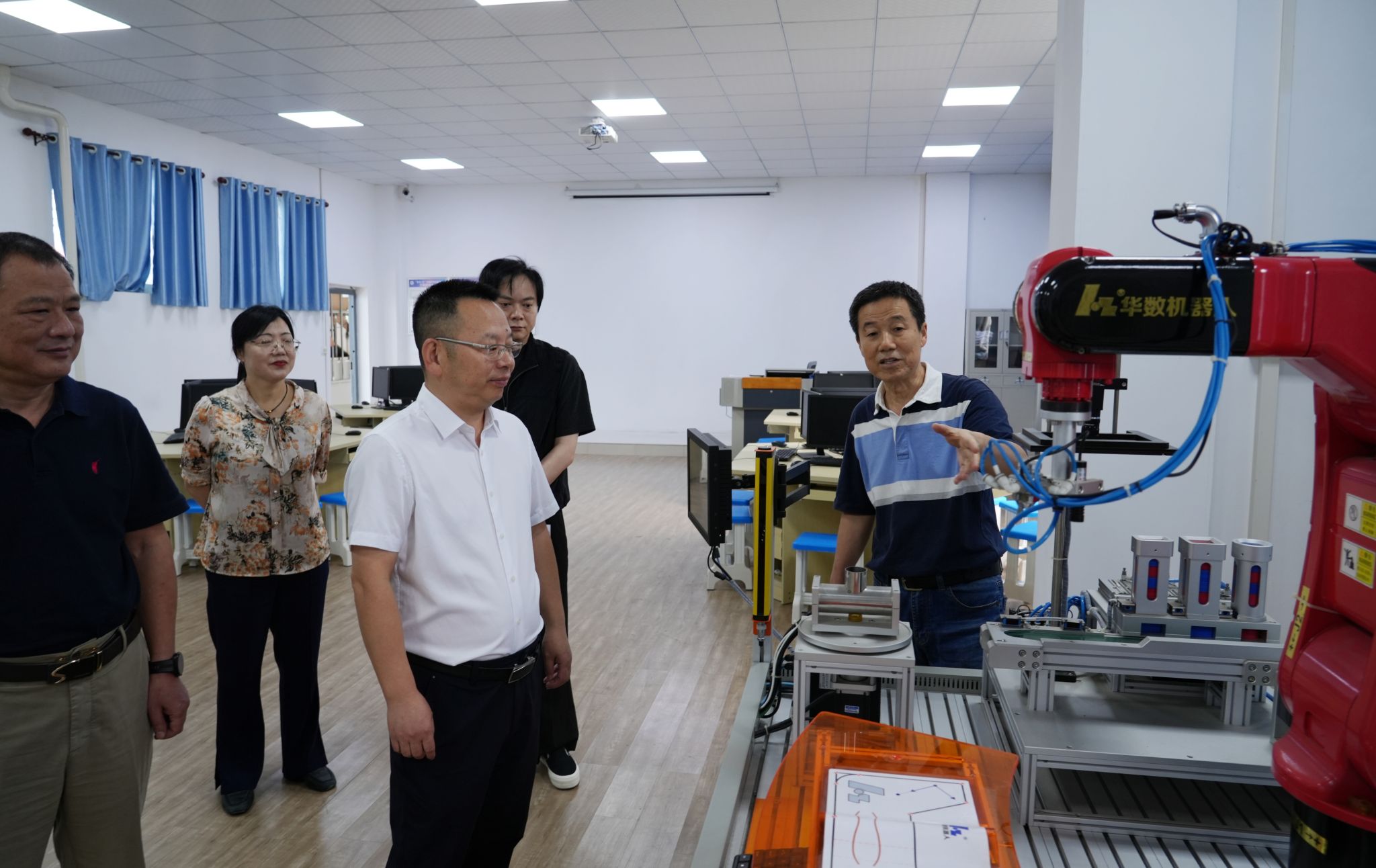 调研期间,在人工智能学院领导班子的陪同下,高建勋书记一行实地考察了工业机器人实验室、金属3D打印实验室、VR实验室、数控技术模拟实验室等实验实训平台,详细了解了实验设备的运行情况、教学应用及科研成果。