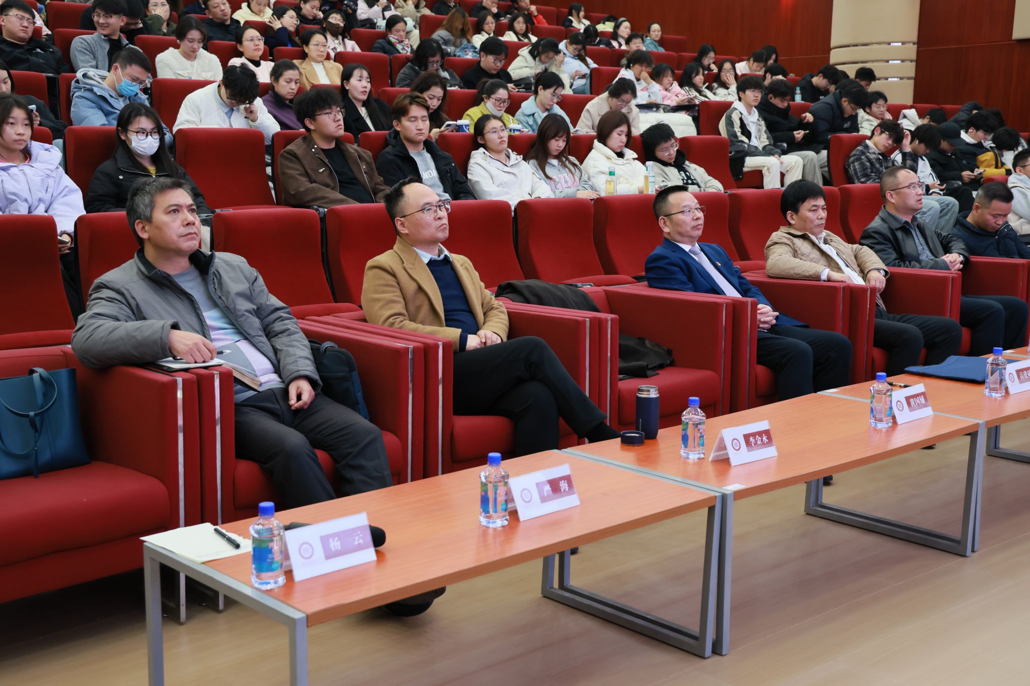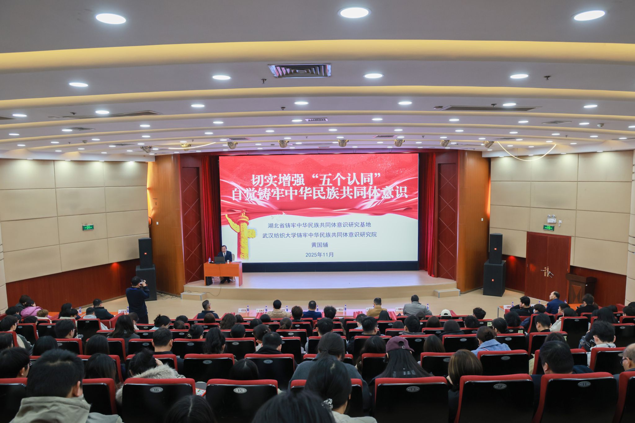 中南在线12月13日消息(通讯员 陈可欣 张涵杰 卢延杰 报道 影视中心摄影)为强化武昌理工学院师生深化对中华民族共同体的全方位、深层次理解,凝聚中国特色社会主义实践力量,武昌理工学院于12月11日在图书馆二楼学术报告厅举办专题讲座,特邀武汉纺织大学原党委副书记、湖北省铸牢中华民族共同体意识研究基地(中华文化符号形象研究中心)主任、武汉纺织大学铸牢中华民族共同体意识研究院院长黄国辅教授作专题报告,并正式聘请其为学校客座教授。武昌理工学院党委书记高建勋、常务副校长别业舫、校长助理李金永等校领导出席,各学院党总支书记、团委书记、全体素质导师、马克思主义学院教师及100名学生代表共同聆听了主题报告。会议由高建勋书记主持。