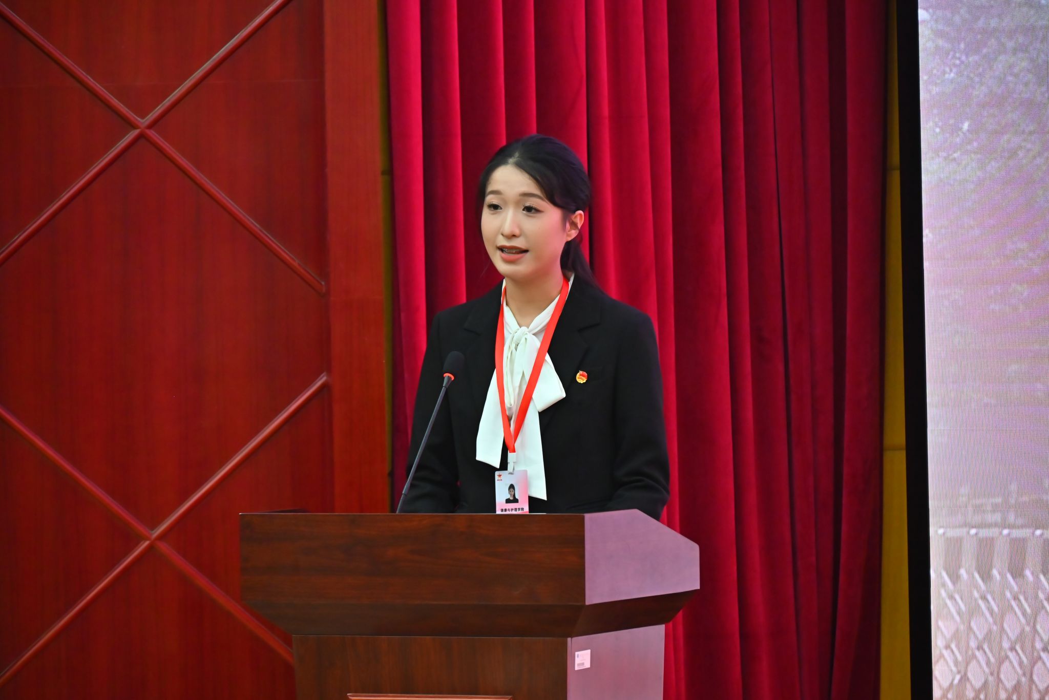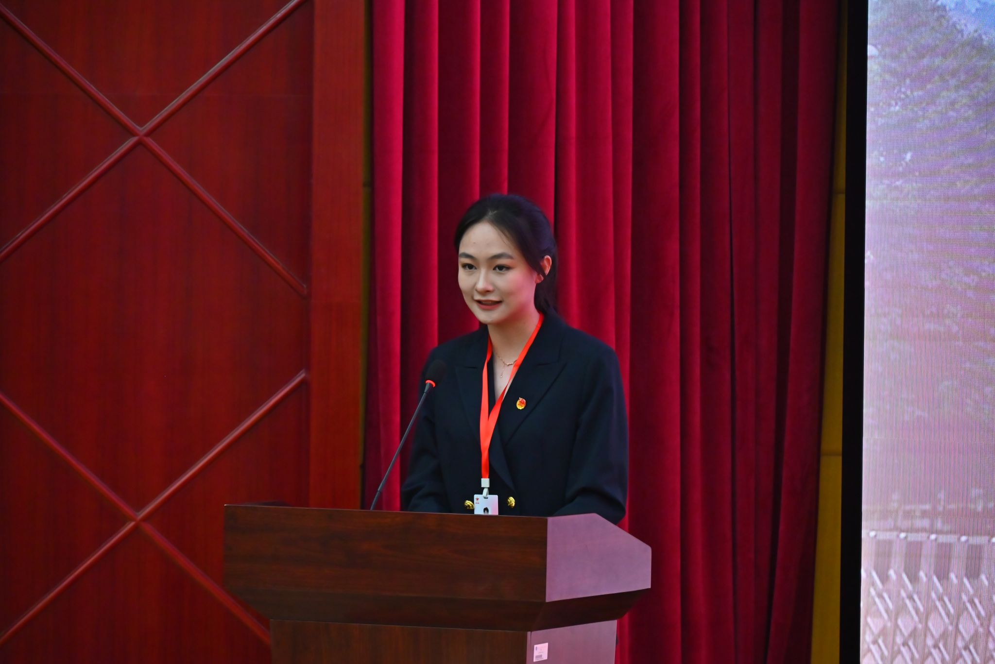 第八期“青马”班班主任、优秀学员代表,第九期“青马”班新学员代表依次上台发言,陈义亭处长为第八期“青马”班学员颁发结业证书、为优秀学员颁发表彰证书。班主任冯玫涵老师在讲话中,总结学员学习成果,勉励学员继续深化理论学习、投身基层实践、传播时代强音。第八期学员陈家琪感谢学校提供学习机会,强调课程结合理论与实践,坚定了学员信念、提升了能力;第九期学员代表孟思彤发言,强调筑牢理想、脚踏实地奋斗,勇担时代使命。