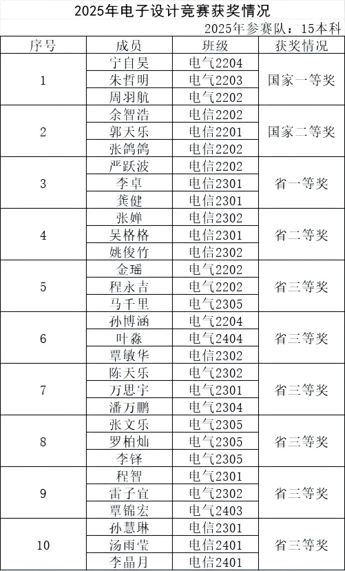 这一优异成绩体现了学校在创新人才培养方面的持续投入与扎实成效。为备战本届竞赛,人工智能学院电子设计创新实验室提前规划,从近300名报名学生中经过多轮选拔,最终组建15支精英参赛队伍。参赛学生历经超过一年的系统训练,全面强化理论基础、实践技能、方案设计及设备操作等综合能力。