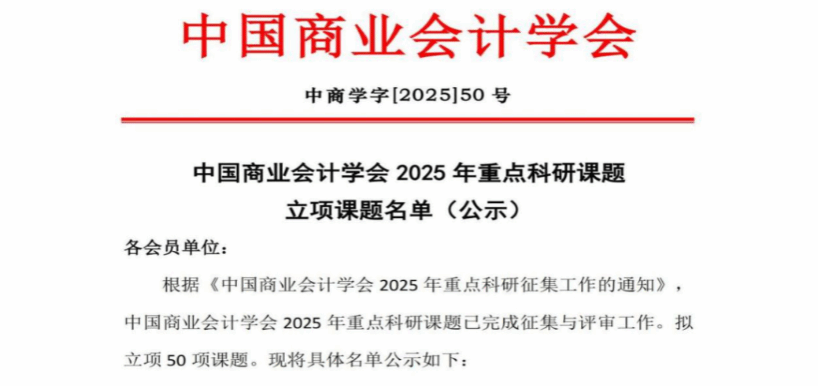 中国商业会计学会是国家一级学会,是会计学专业最具权威的学会之一。在此次评审中,中国商业会计学会在近2000项申报书中,经过资格审查与严格评审,最终50项课题立项,17个重点课题脱颖而出,立项重点课题并专项资助。