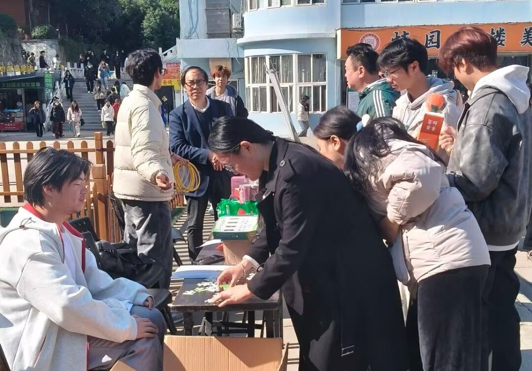 活动伊始,校自律委工作人员提前布置场地,精心准备各类道具和宣传材料,不仅确保了各环节的有序衔接,更时刻关注与参与者的互动交流。他们热情介绍活动意义,详细解答规则疑问,并主动与同学们探讨环保话题。许多参与者在依次完成“答题”“套圈”“拼图”三项挑战后,还获得了一次激动人心的抽奖机会。手伸入抽奖箱的瞬间,满载着惊喜与期待,最终的奖品无论丰厚与否,都成为此次环保之旅的一份独特纪念。