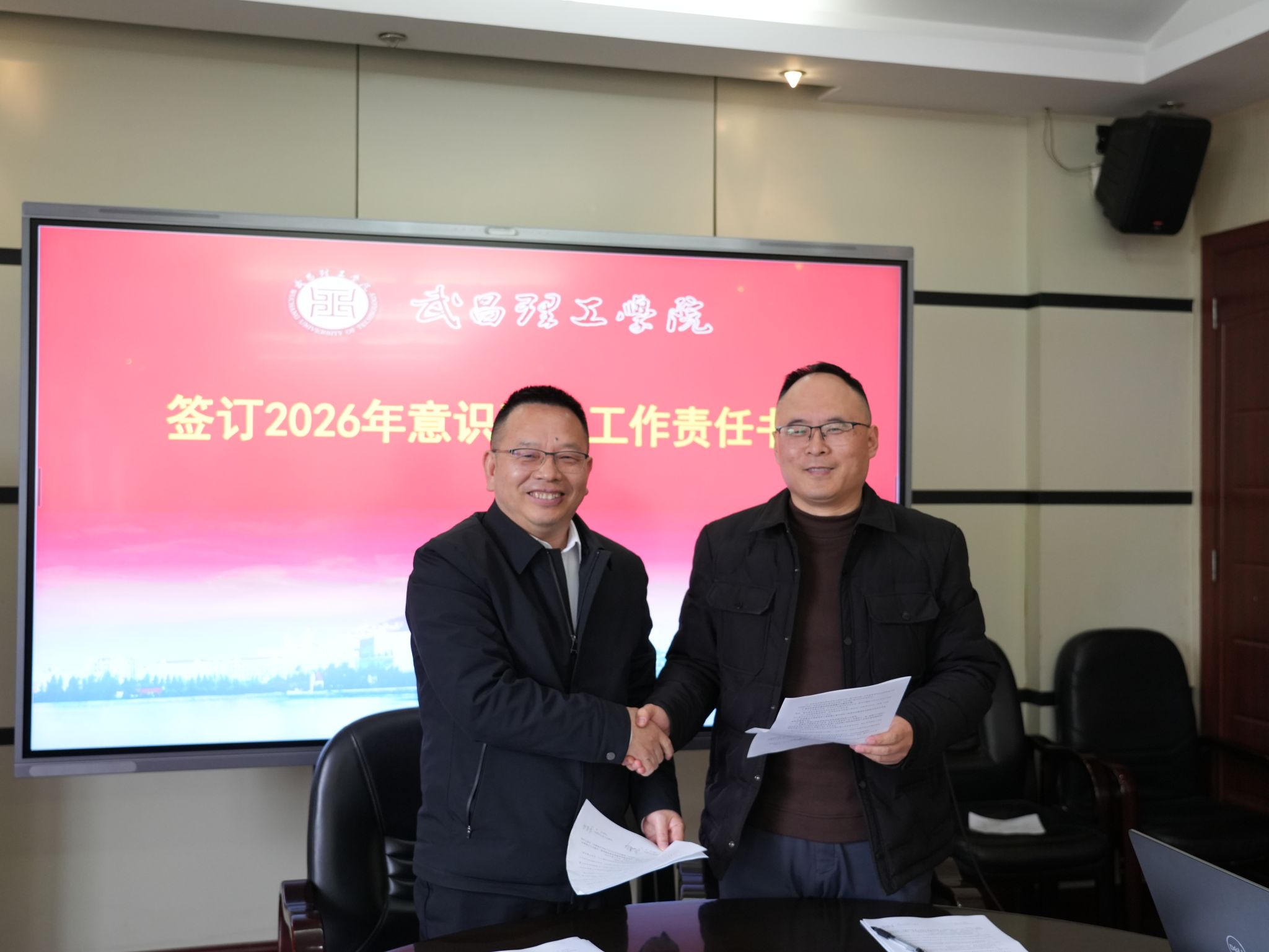 校党委书记高建勋代表学校党委与各党总支书记、直属党支部书记签订了《2026年意识形态工作责任书》,进一步压紧压实意识形态工作主体责任。